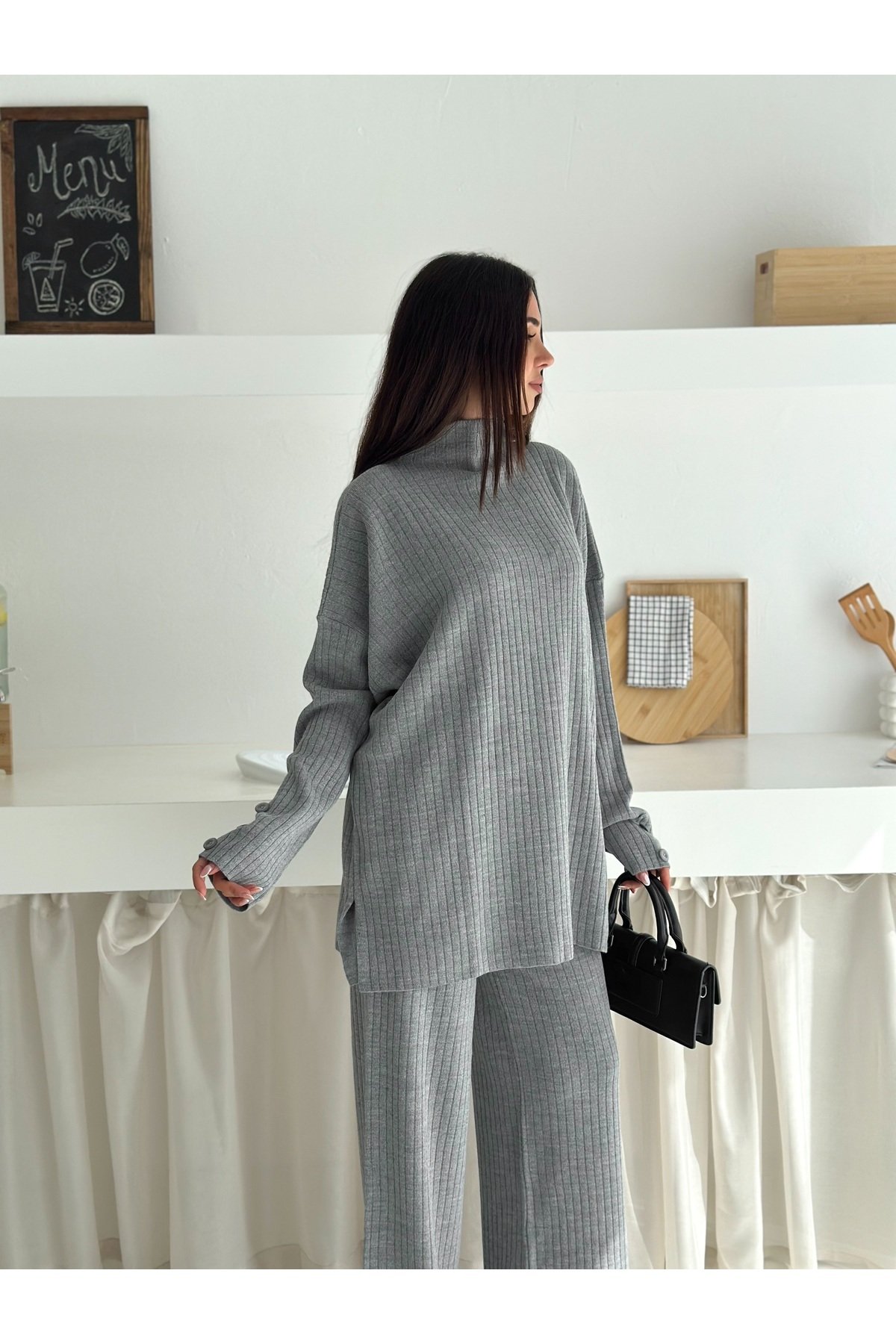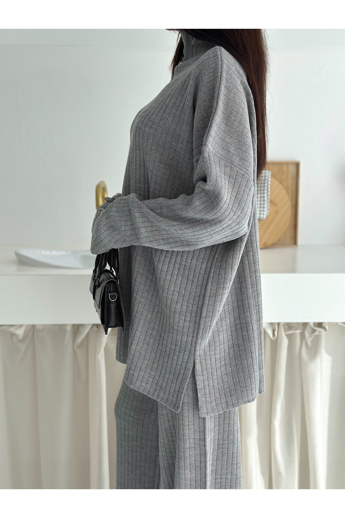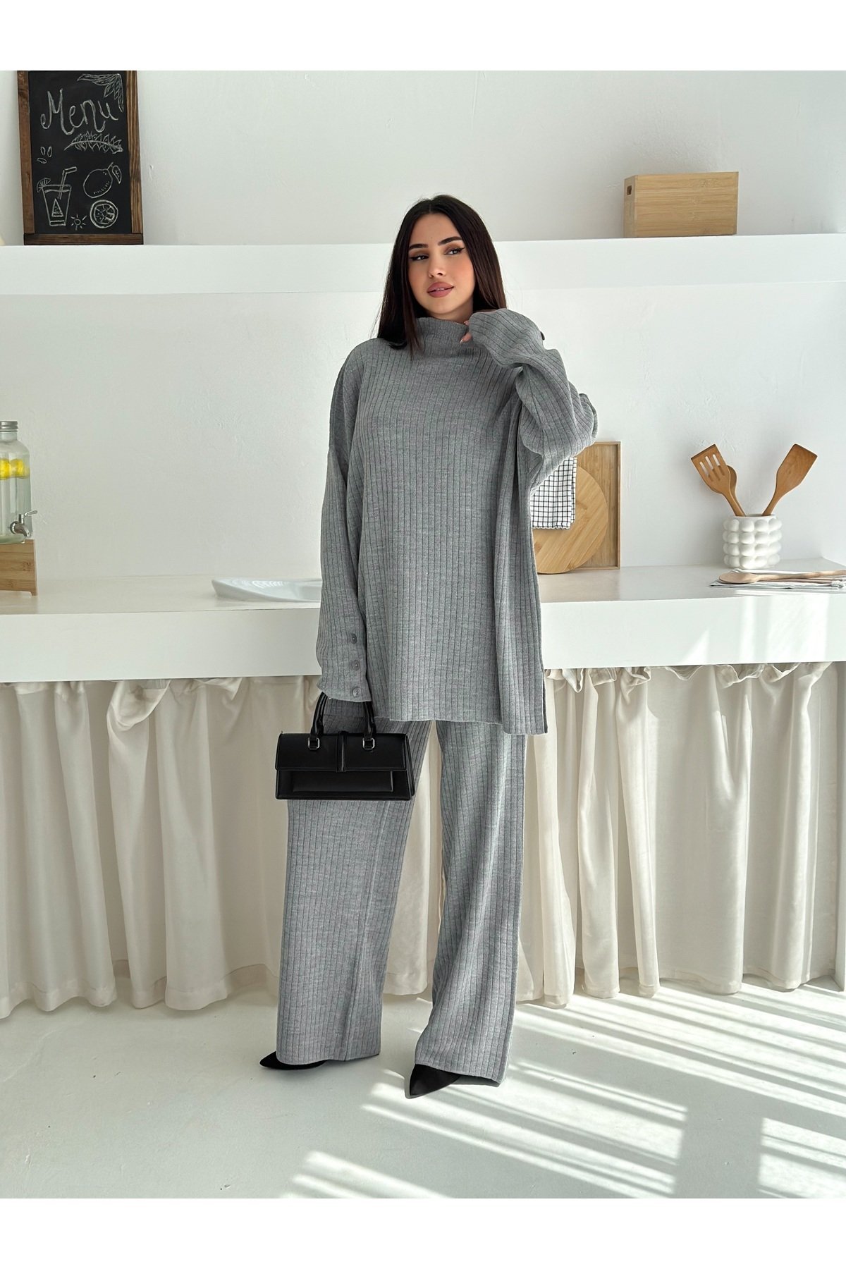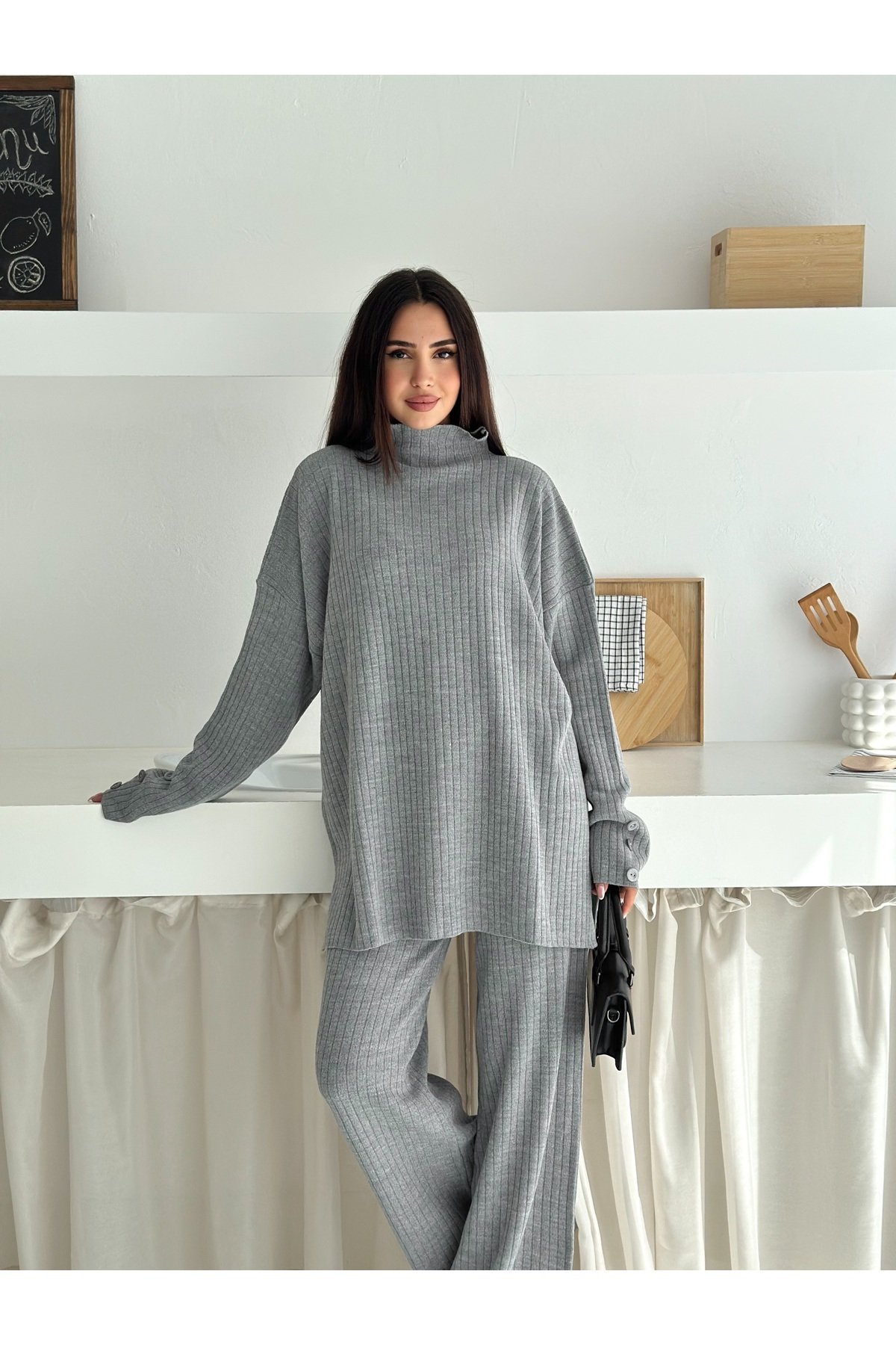 - Balıkçı yaka tasarımı ile hem şıklığı hem de rahatlığı bir arada sunar.; - Orta kalınlıkta triko kumaşı, mevsim geçişlerinde ideal konfor sağlar.; - Cool & comfort persona'sına uygun olarak tasarlanmıştır; günlük kullanım için uygundur.; - Basic koleksiyonun sadeliğini yansıtan bu takım, her gardıropta temel parça olmaya adaydır.; - Mono kapama detayı ile modern ve zarif bir görünüm kazandırır.; - Yüksek bel kesimi sayesinde vücut hatlarını nazikçe sararak feminen bir siluet oluşturur.; - İki parçadan oluşan set, pratik kombin seçenekleri sunar.; - Sürdürülebilirlik detayının bulunmaması, ürünün çevreye duyarlılık açısından sınırları olduğunu gösterir.; - Baskısız deseniyle sade ve zamansız bir tarza sahiptir; farklı aksesuarlarla kolayca kişiselleştirilebilir.; - Geniş paça pantolonuyla rahat hareket etme özgürlüğü tanırken şık duruşunu korur.; - Kutu olmadan gönderilen paketiyle minimalist yaklaşımı benimserken ekstra maliyetten tasarruf edilmesini sağlar.; - Astarsız yapısıyla hafifliği ön planda tutarken cilt dostu dokusuyla gün boyu konfor sunar.; - Cepsiz tasarım, minimalist estetiğe katkıda bulunarak minimalist zevklere hitap eder.; - Yıkama talimatlarına uyulduğunda uzun süre ilk günkü gibi kalmasını garanti eder.; - Düz renk seçeneğiyle kolayca diğer giysilerle eşleştirilebilir; çok yönlülük katmak isteyenlere idealdir.; - %60 akrilik ve %40 pamuk karışımından oluşan materyali yumuşak dokusuyla teninizde hoş hissettirir.; - Kemersiz yapısıyla minimalizmi destekleyerek basit ama etkili bir stil ortaya koyma imkanı verir.; - Fitilli dokuması sayesinde dayanıklılığı arttırarak ürün ömrünü uzatır.; -Esnek yapıya sahip olması hareket serbestisi sağlayarak gün içindeki aktivitelere uyum gösterir.; -Düz deseniyle kolayca kombinlenebilir; farklı aksesuarlarla kişisel tarzınızı yansıtma fırsatını sunar.; - Regular kalıp ile vücudu saran ancak sıkmayan ideal oturuşa sahiptir; her bedene uygunluk gösterir.; -Kadın/kız cinsiyetine hitap eden bu takım, casual/günlük ortamlarda rahatlıkla tercih edilebilir.; -Kazak-pantolon alt üst takımı olarak tasarlanmış olup evden işe her yerde şıklığınızdan ödün vermeden kullanabilirsiniz.