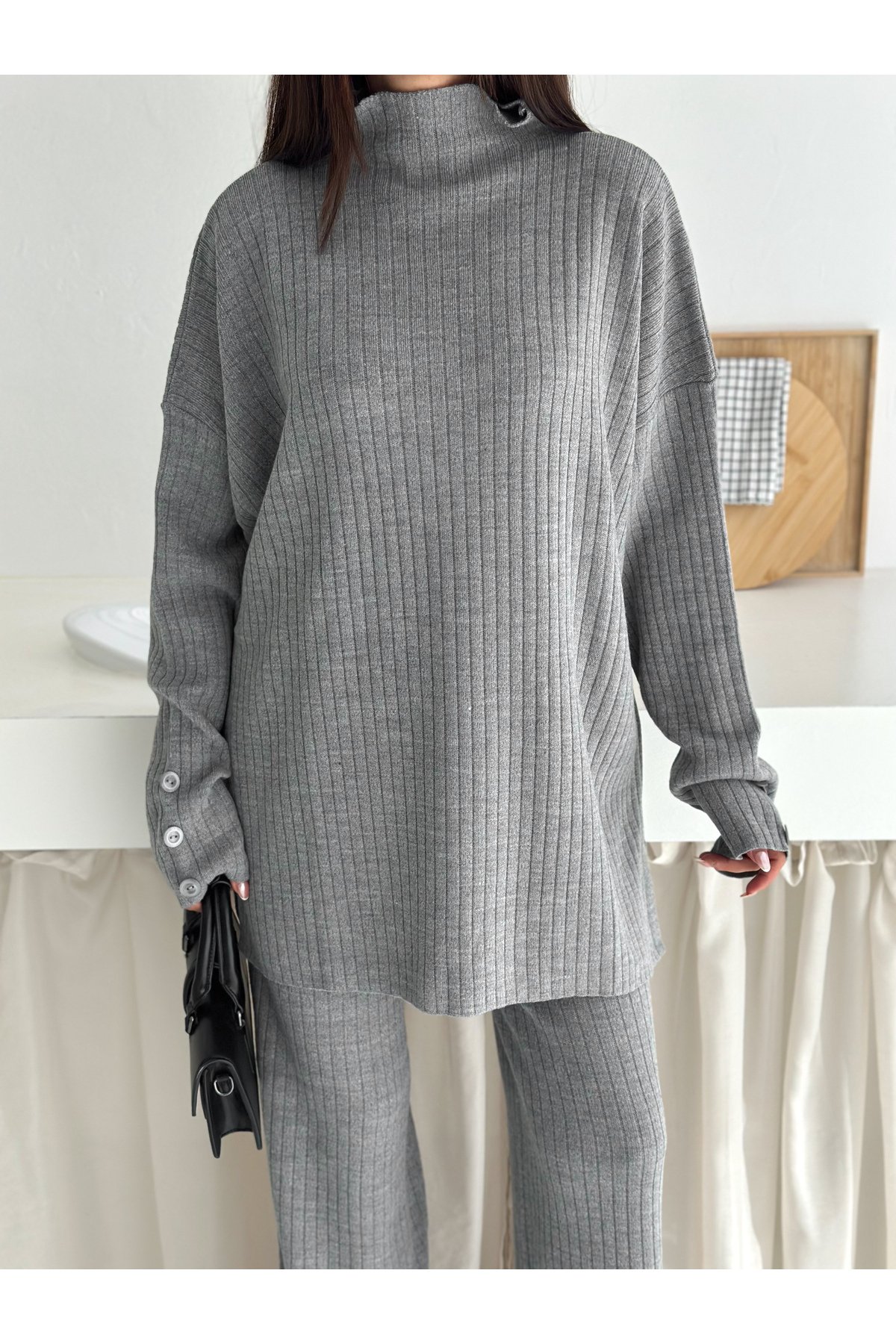 Balıkçı Yaka Düğme Detaylı Triko Takım