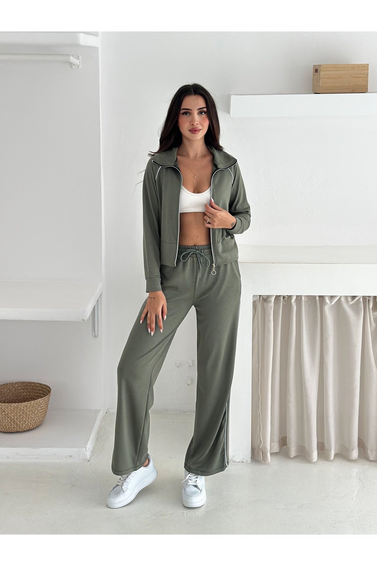 - Uzun paça tasarımı ile modern ve şık bir görünüm sunar.; - Polyester karışımlı materyali sayesinde dayanıklılık ve konforu bir arada yaşatır.; - Esnek yapısı ile hareket özgürlüğünüzü kısıtlamaz, gün boyu rahatlık sağlar.; - Uzun kollu tasarımı, mevsim geçişlerinde ideal koruma sunar.; - Çizgili deseniyle zamansız bir stil oluşturur ve farklı kombinlerle kolayca uyum sağlar.; - Boru paça kesimi, klasik eşofmanlara modern bir dokunuş ekler.; - Fermuarlı yaka detayı ile pratik kullanım imkanı tanır; soğuk havalarda ekstra koruma sağlar.; - Casual ortamlar için ideal olan bu takım, günlük kullanımda rahatlığı ve stili bir arada sunar.; - Basic koleksiyonun parçası olarak, gardırobunuzda temel bir parça olarak yerini alır.; - Türkiye'de üretilmiş olup, yerel üretimden desteklenerek sürdürülebilir moda anlayışına katkıda bulunur.;