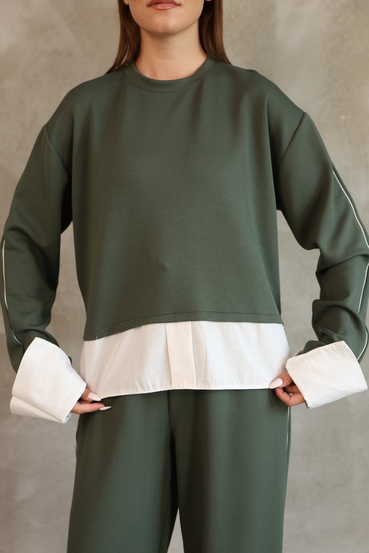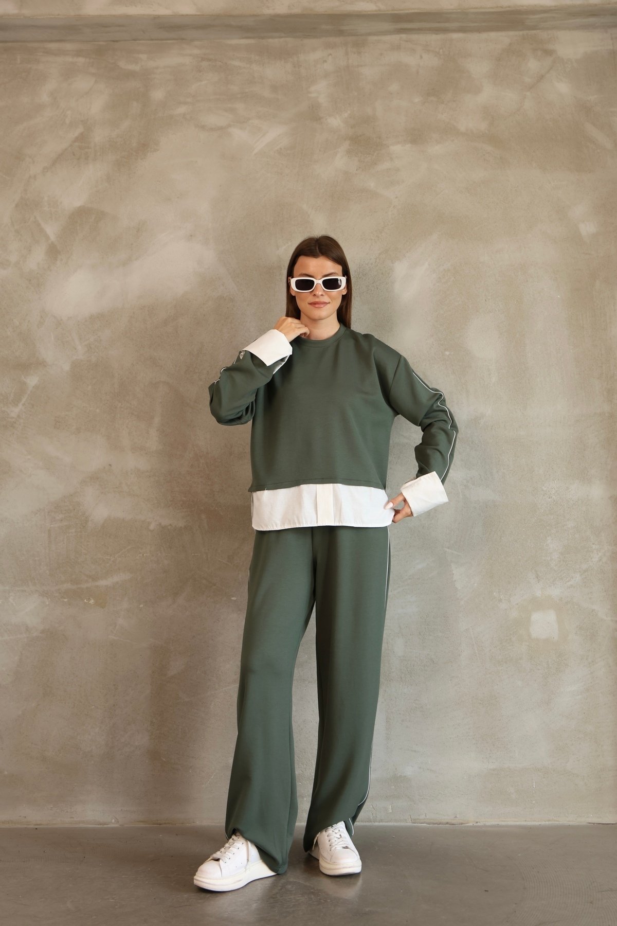 - Rahatlık ve şıklığı bir arada sunan biye detaylı terikoton garnili modal eşofman takımı, günlük kullanım için idealdir.; - Uzun paça boyu sayesinde konforlu bir hareket alanı sağlar ve şık bir görünüm kazandırır.; - Renk bloklu deseniyle dikkat çekici bir stil oluştururken, casual tarza uygunluğuyla her ortamda rahatlıkla tercih edilebilir.; - Esnek yapısı sayesinde vücut hatlarınıza mükemmel uyum sağlayarak gün boyu rahat etmenizi garanti eder.; - %70 polyester, %25 pamuk ve %5 elastan karışımından oluşan materyali ile dayanıklılığı artırırken esnekliği korur.; - Yıkama talimatlarına uygun bakım yapıldığında uzun ömürlü kullanım sunar; TS09 kodlu yıkama talimatına göre temizlenmelidir.; - Sürdürülebilirlik detayının bulunmaması, çevre dostu alternatifler arayanlar için alternatif bir seçenek olabilir.; - Yetişkin yaş grubuna hitap eden tasarımıyla geniş bir kullanıcı kitlesine uygundur.; - Örme kumaş tipi, yumuşak dokusuyla cildinize nazikçe dokunur ve konforlu bir deneyim sunar.; - Türkiye menşeli olması yerel üretim avantajını beraberinde getirirken kalite standartlarından ödün vermez.; - Regular kalıp ile vücudu saran ancak sıkmayan ideal oturuşa sahiptir; her bedene uygunluk gösterir.; - Bisiklet yakası modern ve spor bir hava katarken, rüzgara dayanıklılığı sayesinde dış mekan aktivitelerinde de güvenilir bir seçimdir.; - Boru paça kesimi hem pratik hem de zamansız bir tarz sunarak farklı kombinlerle kolayca uyum sağlar.; - Basic koleksiyonun sadeliğiyle gardrobunuzdaki diğer parçalarla kolayca eşleştirilebilir; çok yönlülük kazandırır.; - Polyester karışımlı malzeme suya karşı dirençli özellikte olup leke tutmazlık performansı sergiler.; -Uzun kol tasarımının sunduğu koruyuculukla soğuk havalarda bile sıcak kalmanız sağlanır; uzun kol boyu ise tam koruma altındadır.