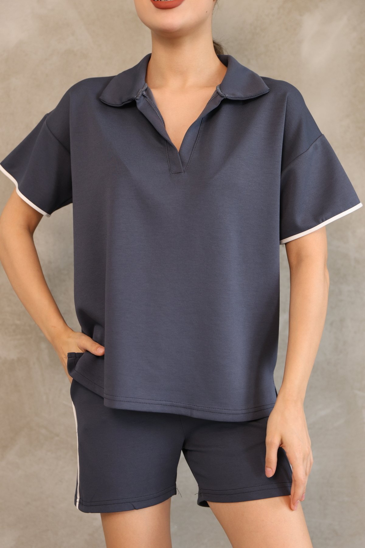 Sportiness Biyeli polo yaka cepli yumuşak doku modal kumaş şortlu takım