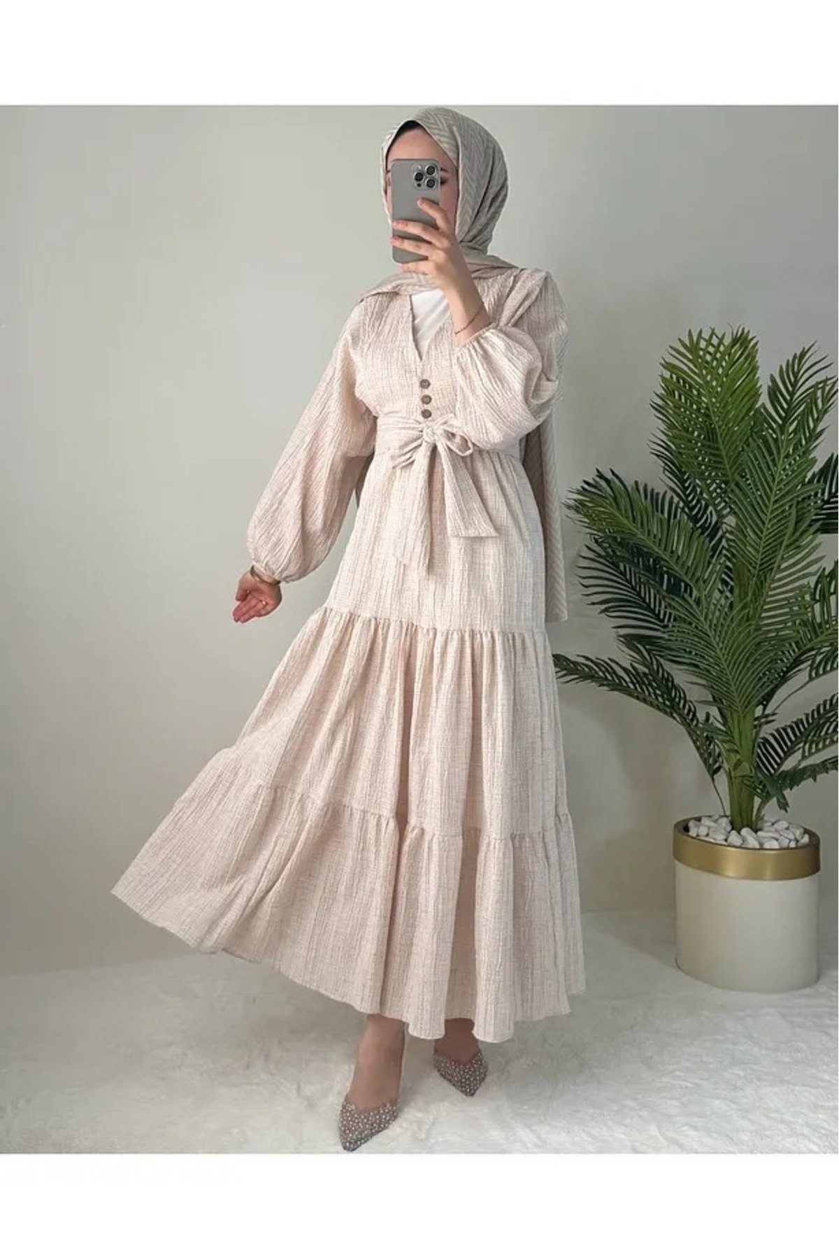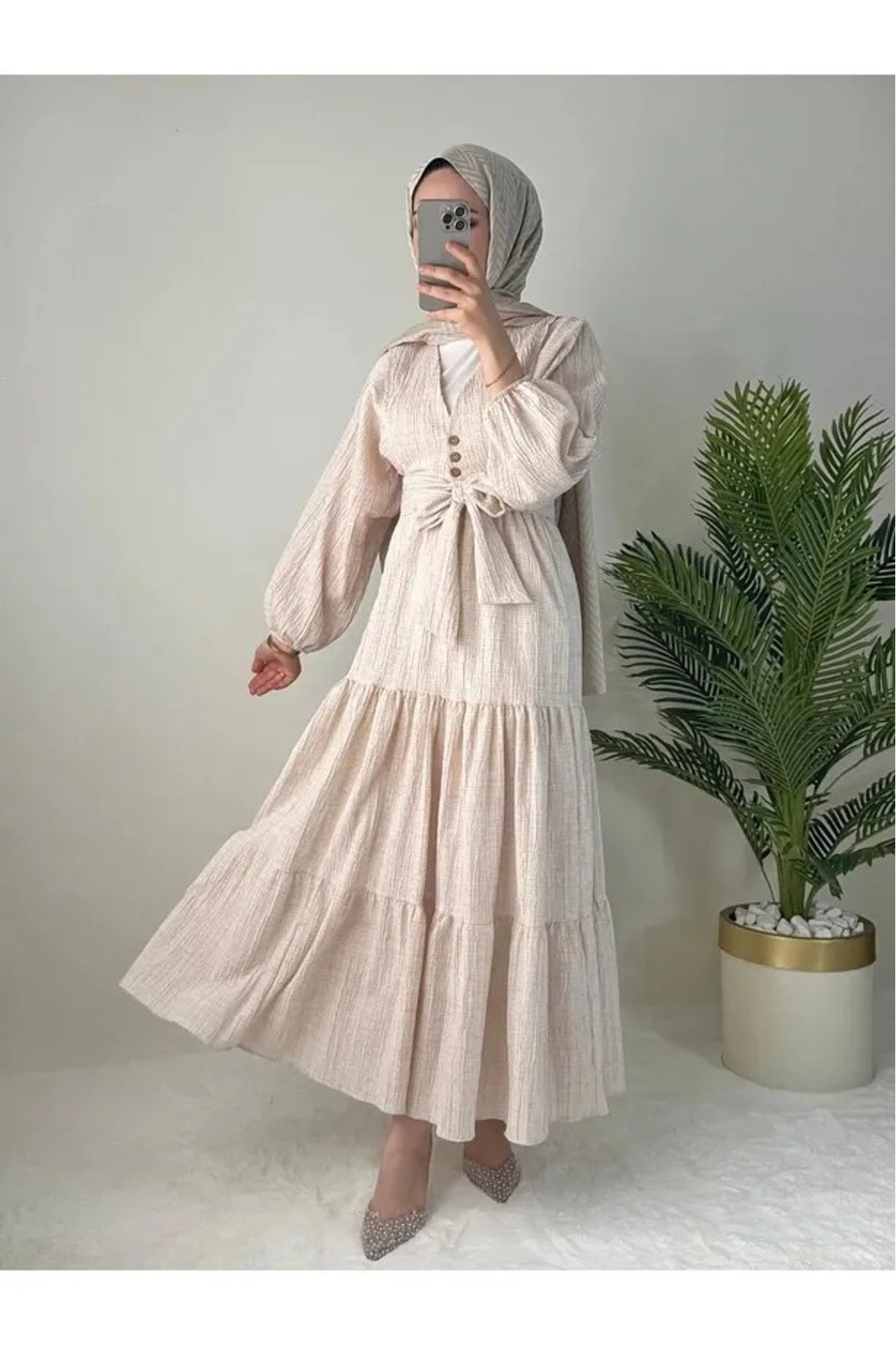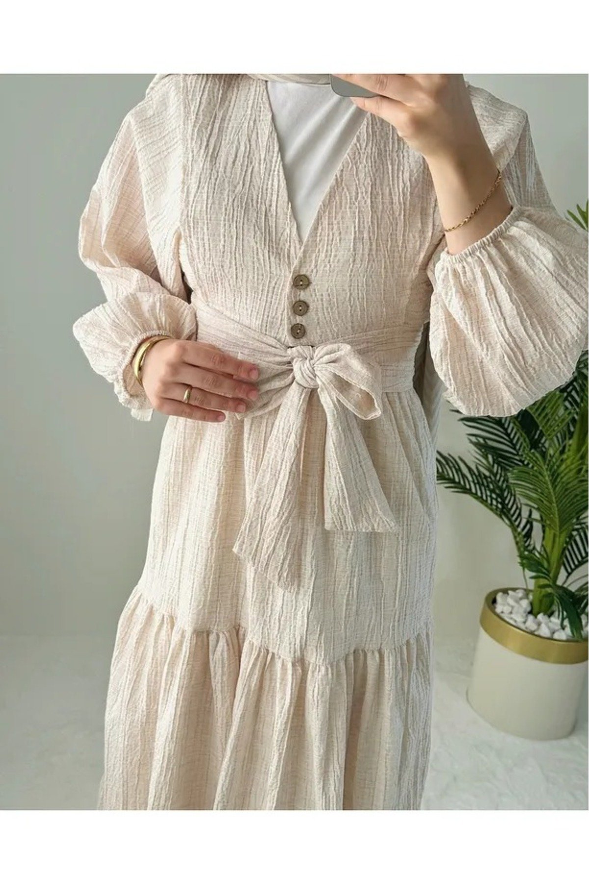 - Göğüs bölgesinden bağlanabilen düğmeleri sayesinde kolayca giyilip çıkarılabilir.; - Orta kalınlığındaki keten karışımı materyali ile mevsim geçişlerinde ideal konfor sunar.; - Rahat ve şık görünümüyle günlük kullanım için uygun olan bu takım, casual tarza sahiptir.; - İki parçadan oluşan set; bluz ve etek olmak üzere tam bir kombinasyon sağlar.; - Yarım pat düğme kapama şekliyle pratik kullanım imkanı tanırken, yüksek bel tasarımı vücut hatlarını zarifçe sarar.; - Her sezon tercih edebileceğiniz basic koleksiyonunun bir parçasıdır; zamansız stil arayanlar için idealdir.; - Geniş paça kesimi sayesinde hareket özgürlüğü sağlarken, düz deseniyle sadelikten yana olanların beğenisini kazanır.; - Astarlı yapısıyla rahatlıkla dışarı çıkabilirsiniz; cepsiz tasarım ise minimalist bir dokunuş katmaktadır.; - Yıkama talimatlarına uyarak uzun süre ilk günkü gibi koruyabilirsiniz (TS09).; - %70 keten içeriğiyle nefes alabilir yapıda olup, viskon karışımı yumuşaklık hissi verir.; - Beli lastikli olması sayesinde farklı bedenlere uyum sağlayarak konforlu bir deneyim sunar.; - Düz siluetiyle her türden ayakkabıya kolayca adapte olurken, balon kollar modern bir hava katar.; - Balon kol detayları ile trendleri takip ederken uzun kol boyu mevsimsel değişikliklere karşı ekstra koruma sağlar.; - Keten karışımlı dokuması sayesinde dayanıklılık ve estetiği bir arada buluşturur.; - Bel kısmındaki kemersiz tasarım minimalizmi ön plana çıkartarak sade ama etkili bir görünüm elde etmenizi sağlar.; - Dokuma tipi ile kaliteli işçilik hissini üzerinizde taşıyacak şekilde üretilmiştir.; - Regular fit kesimiyle vücudu sarmadan rahatça oturan bir yapıdadır.