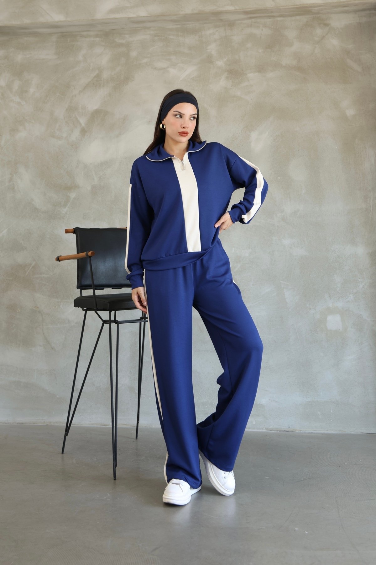 - Rahatlık ve şıklığı bir arada sunan garnili şerit detayları ile günlük kullanıma uygun.; - Uzun paça boyu, hem konforlu hem de modern bir görünüm sağlar.; - Canlı renk bloklarıyla dikkat çeken deseniyle enerjik ve dinamik bir stil oluşturur.; - Esnek yapısı sayesinde hareket özgürlüğü sunar ve vücut hatlarınıza mükemmel uyum sağlar.; - %70 polyester, %25 pamuk ve %5 elastan karışımı materyali ile dayanıklılığı artırırken yumuşak dokunuş hissi verir.; - Yıkama talimatlarına uygun şekilde bakım yapıldığında uzun ömürlü kullanım imkanı tanır (TS09).; - Sürdürülebilirlik detayına sahip olmayan bu takım, çevreye duyarlı tercihlerde bulunmak isteyenler için ideal değildir.; - Yetişkin yaş grubuna hitap eden tasarımıyla herkes tarafından rahatlıkla tercih edilebilir.; - Örme kumaş tipi sayesinde esnekliği arttırarak gün boyu konfor sunar.; - Türkiye'de üretilmiş olması yerel üretim desteğini teşvik ederken kalite standartlarından ödün vermez.; - Regular kalıp ile vücudu saran ancak sıkmayan ideal oturuşa sahiptir; her bedene uygunluk gösterir.; - Kadın ve kız kullanıcılar için özel olarak tasarlanmıştır; zarif detaylarıyla göz alıcı kombinler yaratmanızda yardımcı olur.; - Regular boy kesimiyle farklı boylardaki kişiler için uygundur; her türden ayakkabıya kolayca uyum sağlar.; - Fermuarlı yakası sayesinde pratik giyip çıkarma imkanına sahip olursunuz; soğuk havalarda ekstra koruma sağlar.; - Rüzgara dayanıklı kumaşı ile kötü hava koşullarında bile rahat etmenizi garanti eder.; - Boru paça tasarımının getirdiği modern çizgiyle trendleri takip eden bir tarza sahip olursunuz.; - Basic koleksiyonun sadeliğiyle zamansız parçalar arasında yerini alır; gardrobunuzdaki diğer kıyafetlerle kolayca eşleştirilebilir.; - Polyester karışımlı malzemeden üretilmiştir; kolay temizlenebilirlik ve dayanıklılık vaad eder.; - Uzun kollu tasarım soğuktan korurken şık duruşunu korur; mevsim geçişlerinde vazgeçilmez olacak