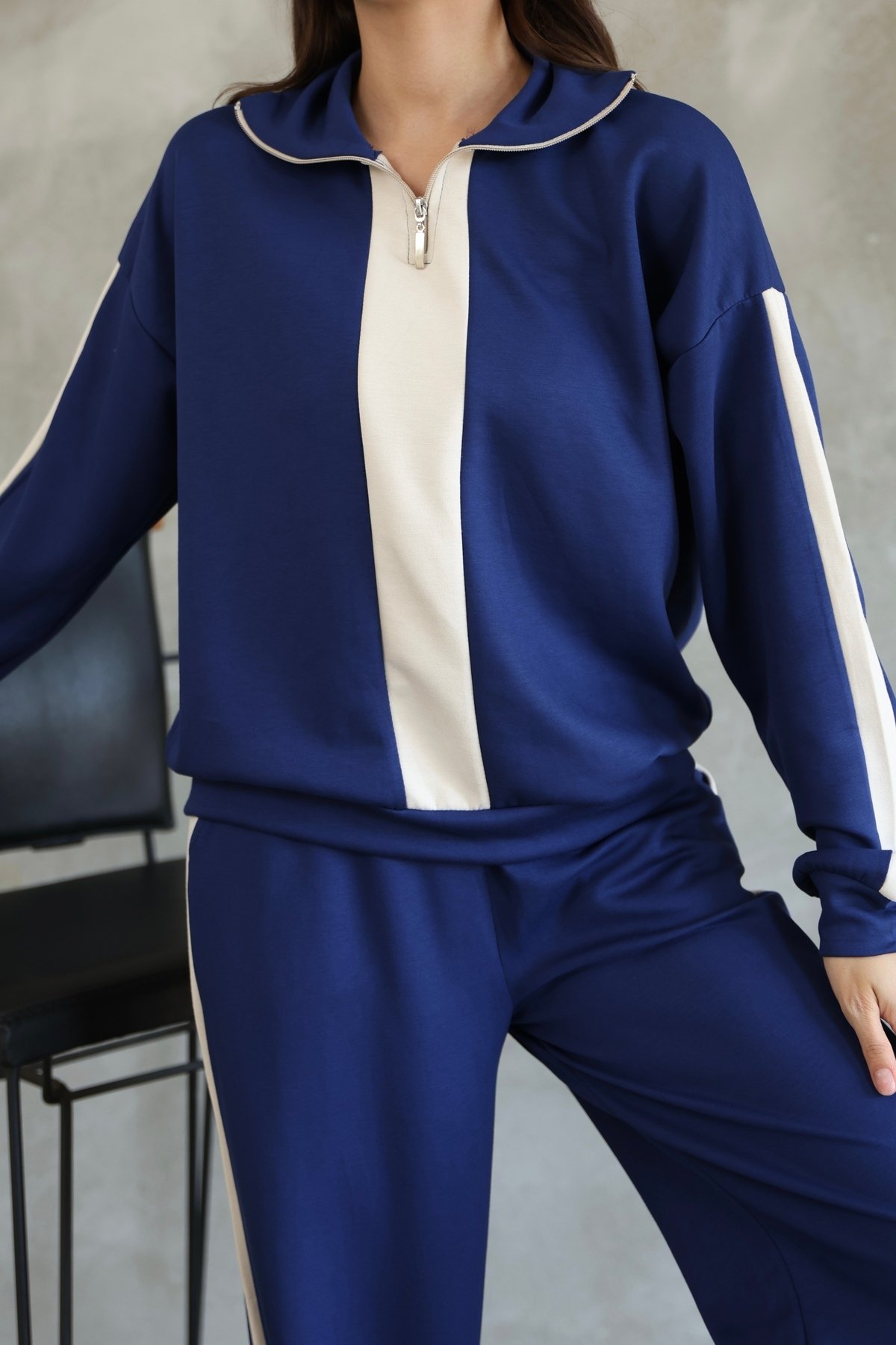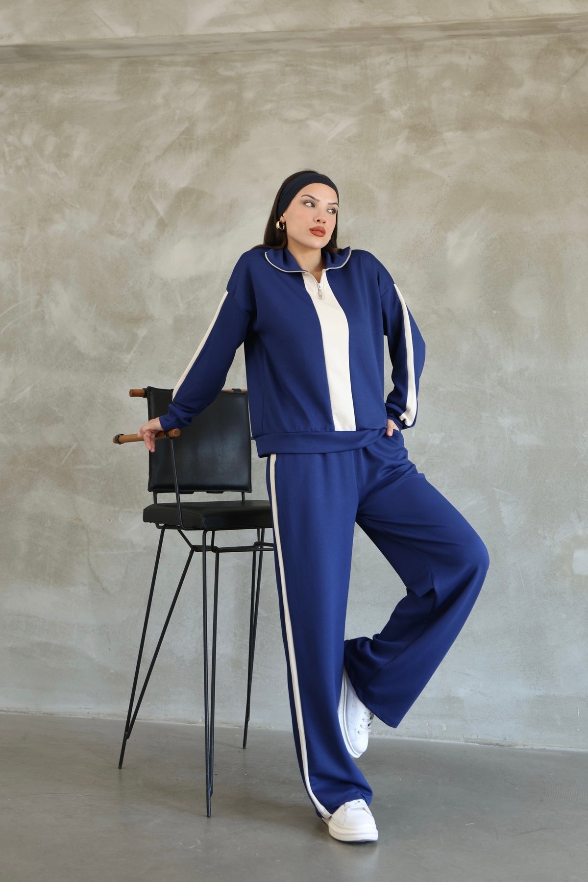 Garnili Şerit Detaylı Fermuarlı Modal Kumaş Eşofman Takım