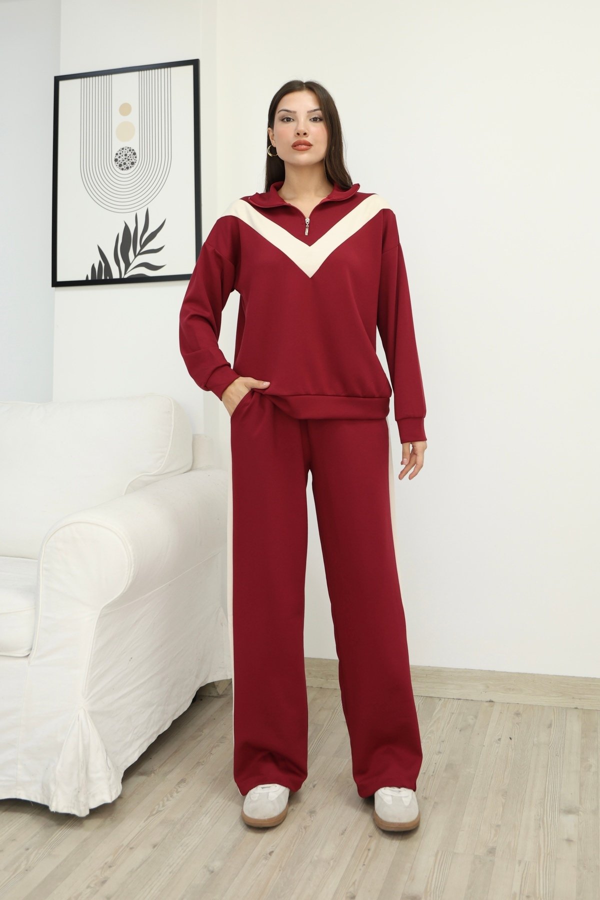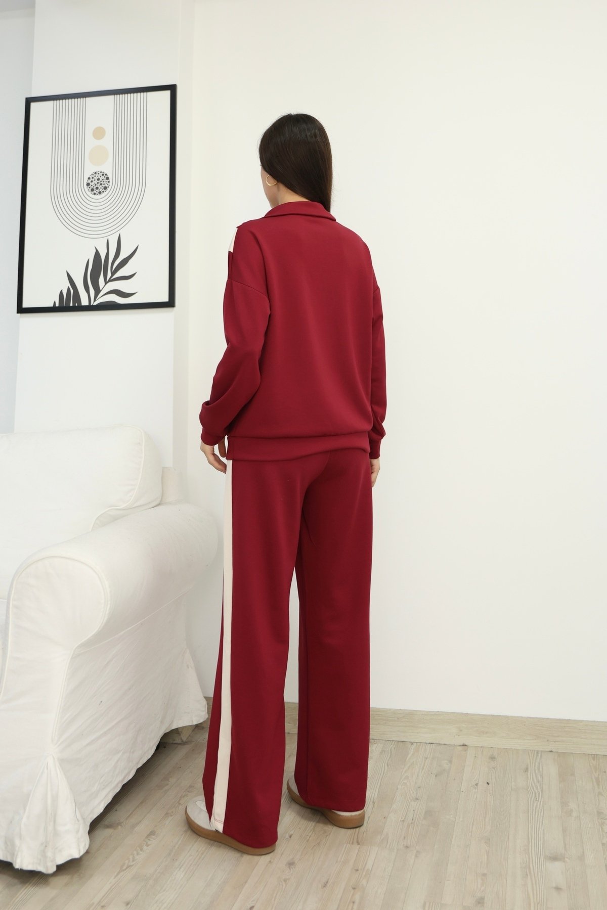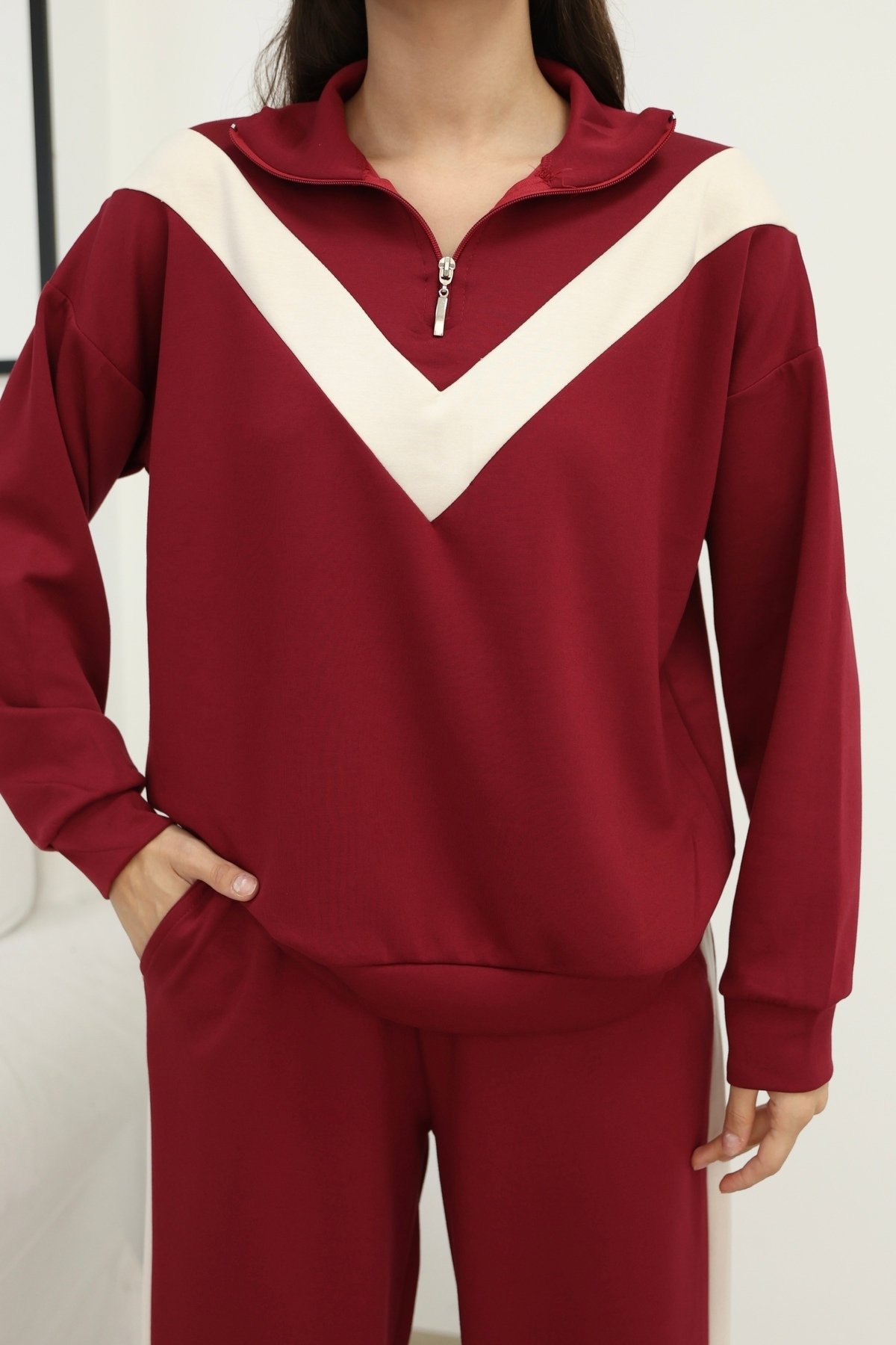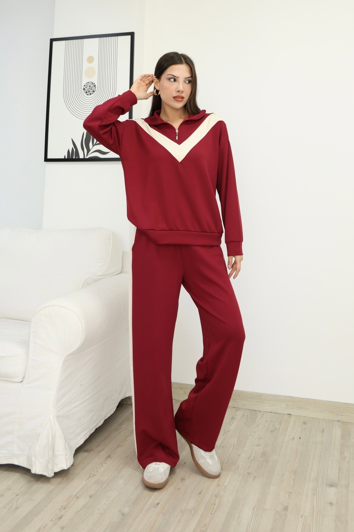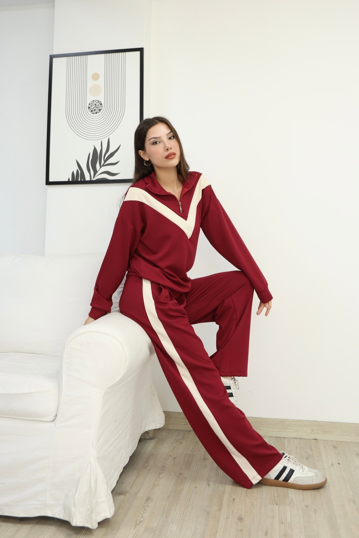 Garnili Yarım Fermuarlı Şerit Detaylı Modal Kumaş Eşofman Takım