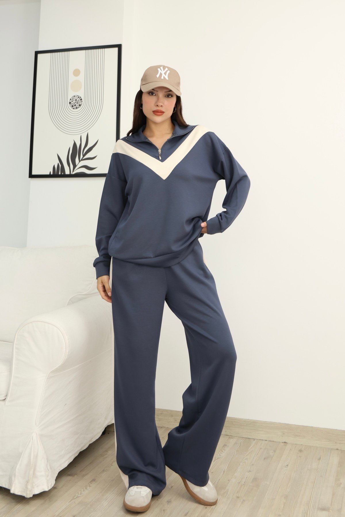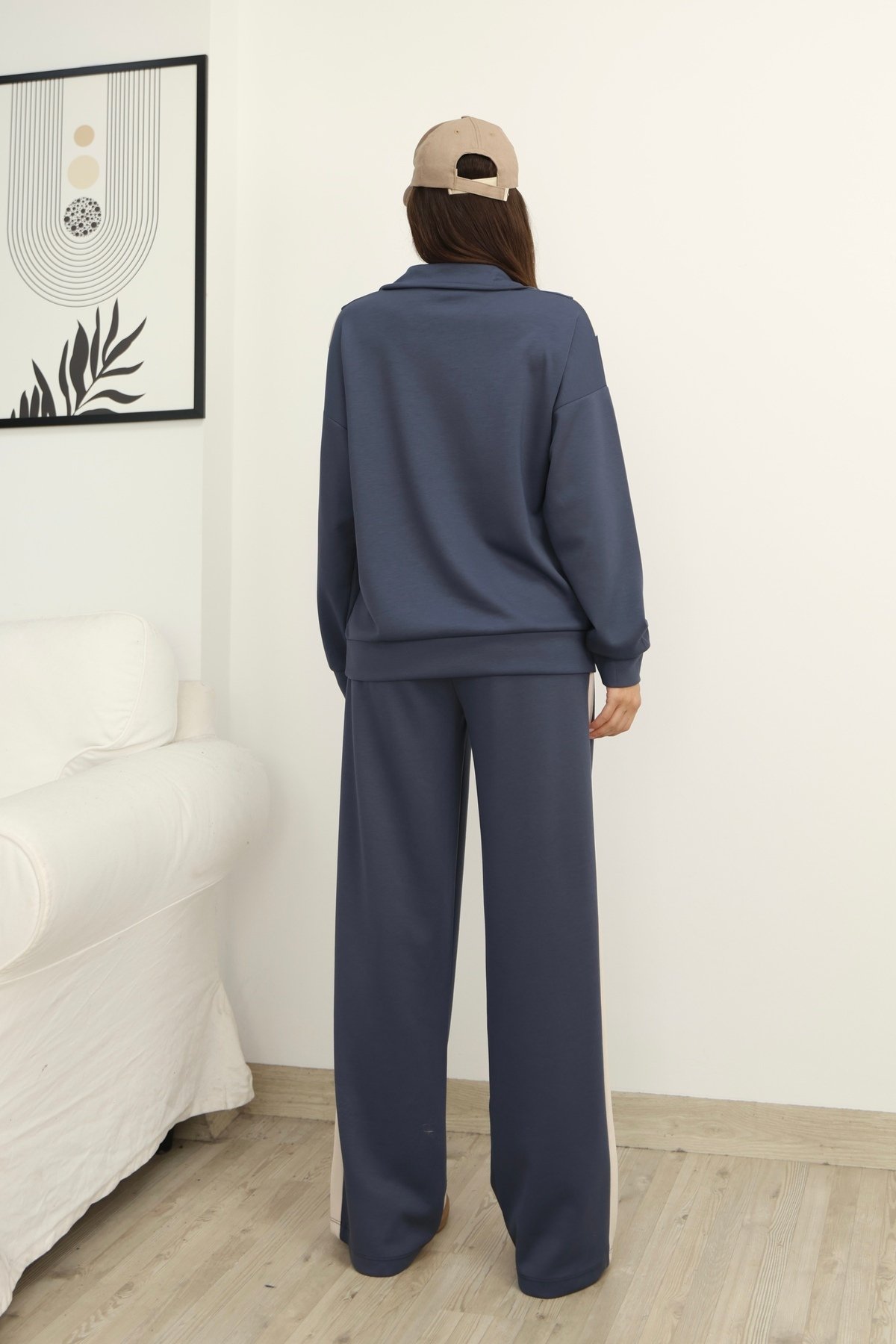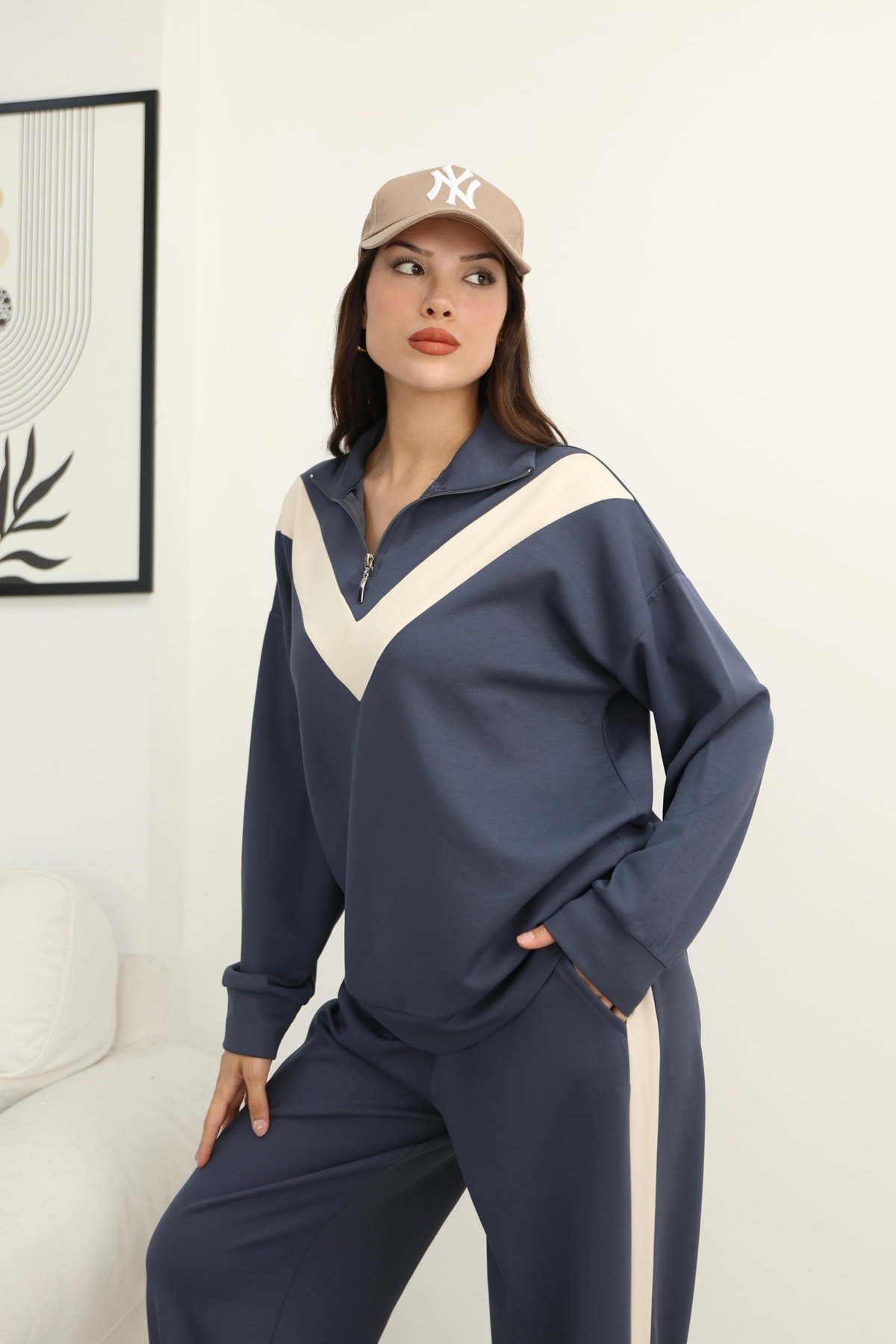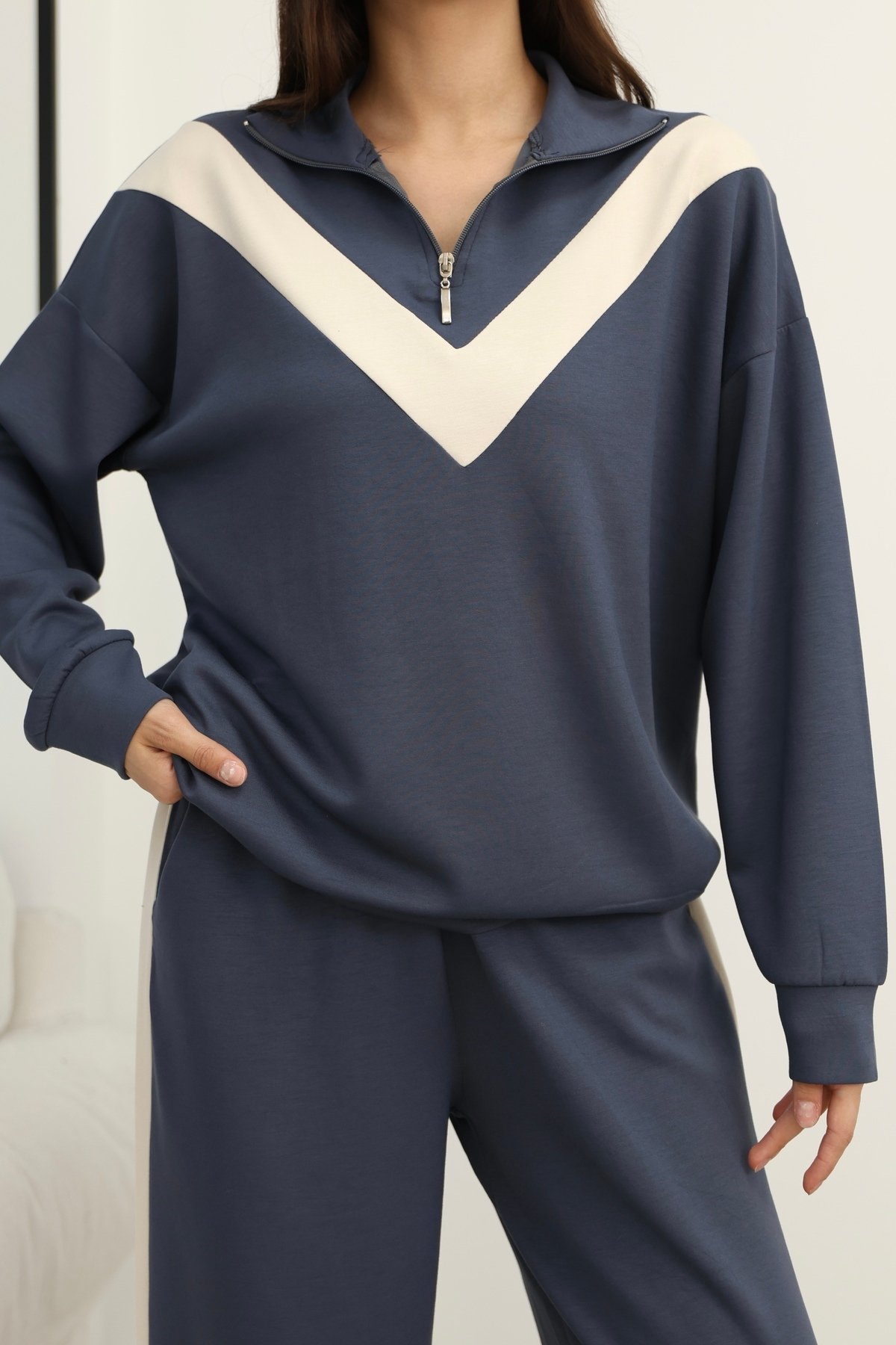 Garnili Yarım Fermuarlı Şerit Detaylı Modal Kumaş Eşofman Takım