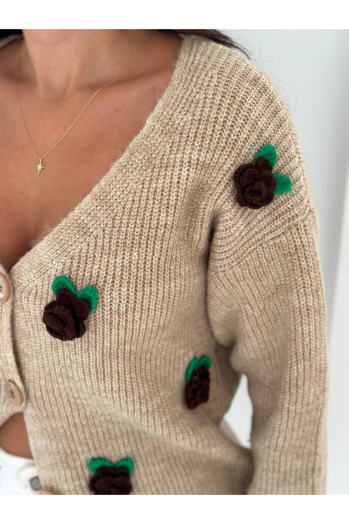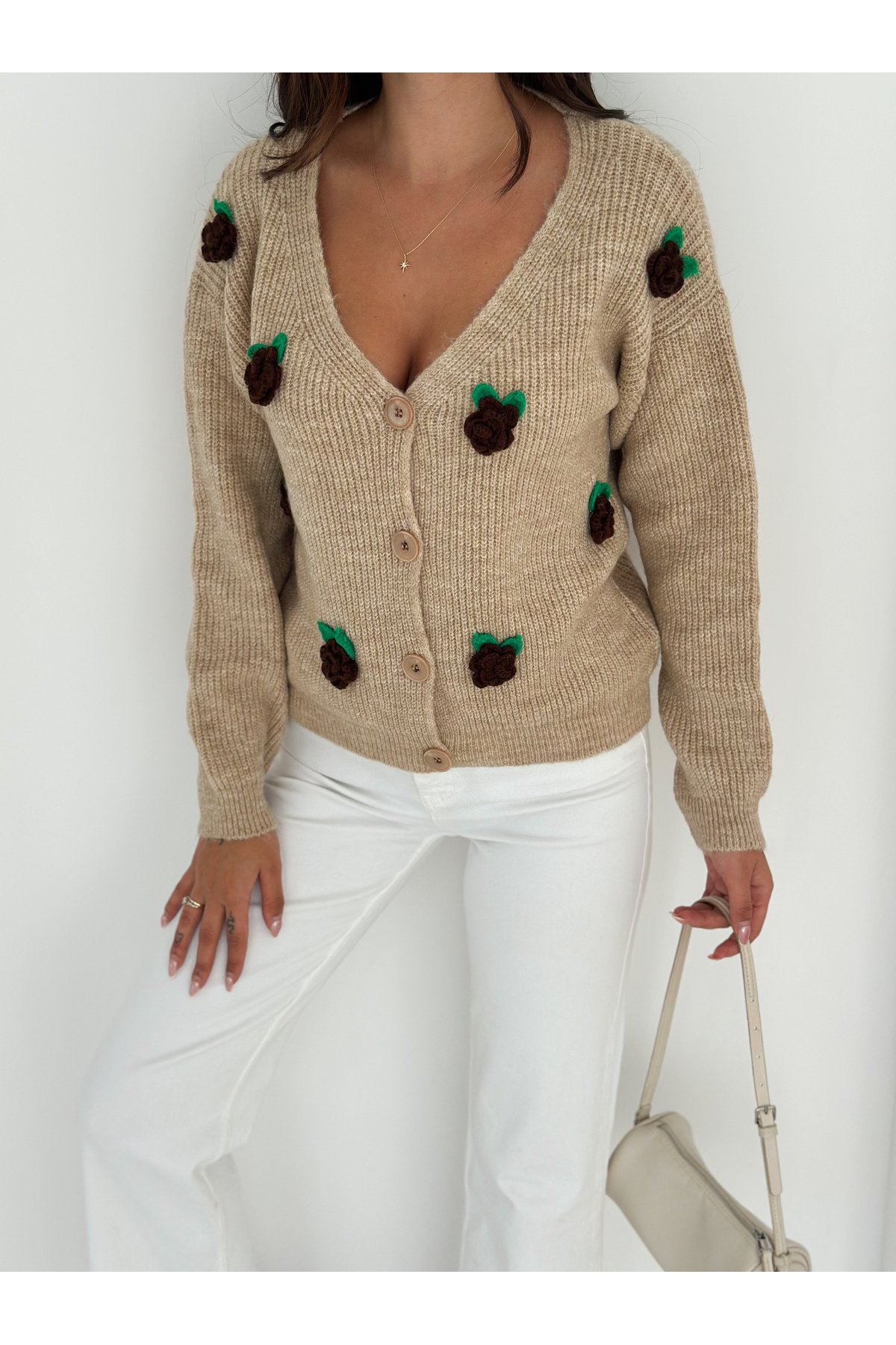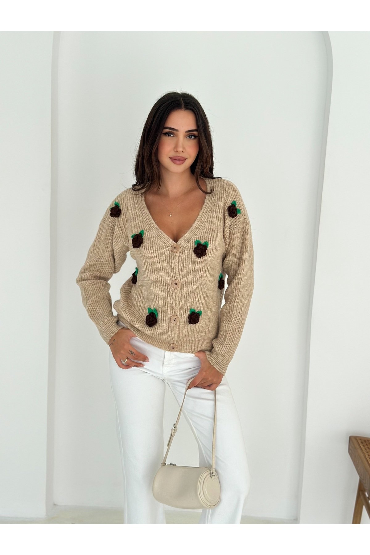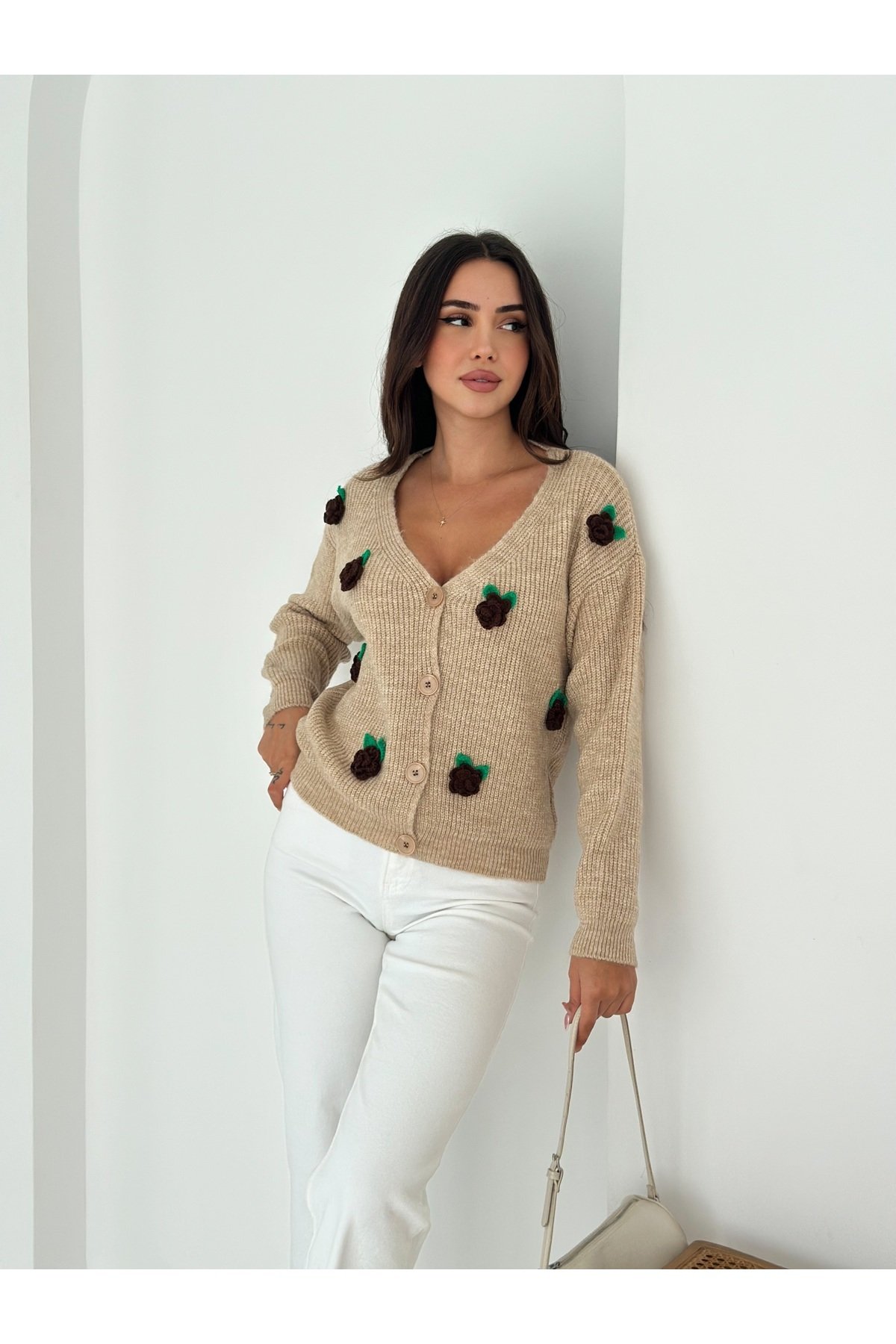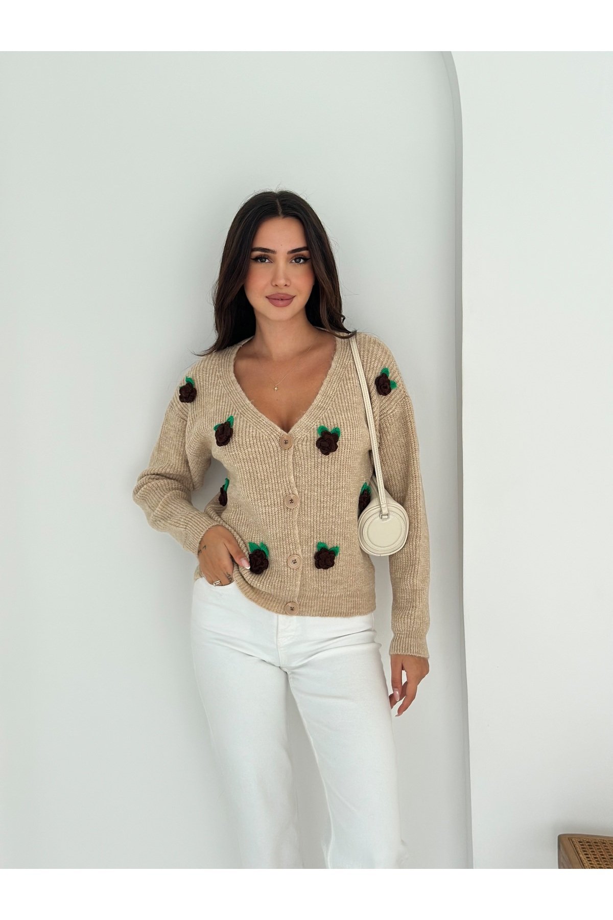 - Basic siluetiyle günlük kullanım için ideal, rahat ve şık bir seçenek sunar.; - Düğmeli tasarımı ile kolayca giyilip çıkarılabilir ve pratik bir kullanım sağlar.; - Çiçekli deseniyle feminen bir dokunuş katarken, kruvaze yaka tipiyle modern bir görünüm sunar.; - Kemersiz tasarımı sayesinde vücut hatlarınıza uyum sağlayarak konforlu bir deneyim yaşatır.; - Tek parça halinde gelen bu hırka, minimal ama etkili bir stil oluşturmanız için idealdir.; - Tüylenmez özelliği ile uzun süreli kullanım için dayanıklılık ve kaliteyi garanti eder.; - Sürdürülebilirlik detayları bulunmayan bu ürün, şıklığı ve rahatlığı ön planda tutar.; - Uzun kollu tasarımı mevsim geçişlerinde ve serin havalarda sıcak tutar.; - Triko materyali yumuşak dokusuyla cildinize nazikçe dokunurken, cool & comfort persona ile rahatlığı hissettirir.; - Düz kesimiyle her tür alt giyimle kolayca kombinlenebilir.; - Casual ortamlarda