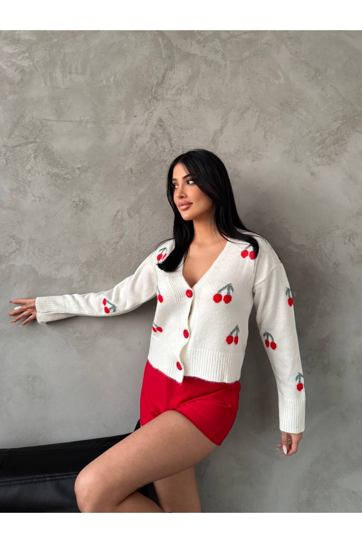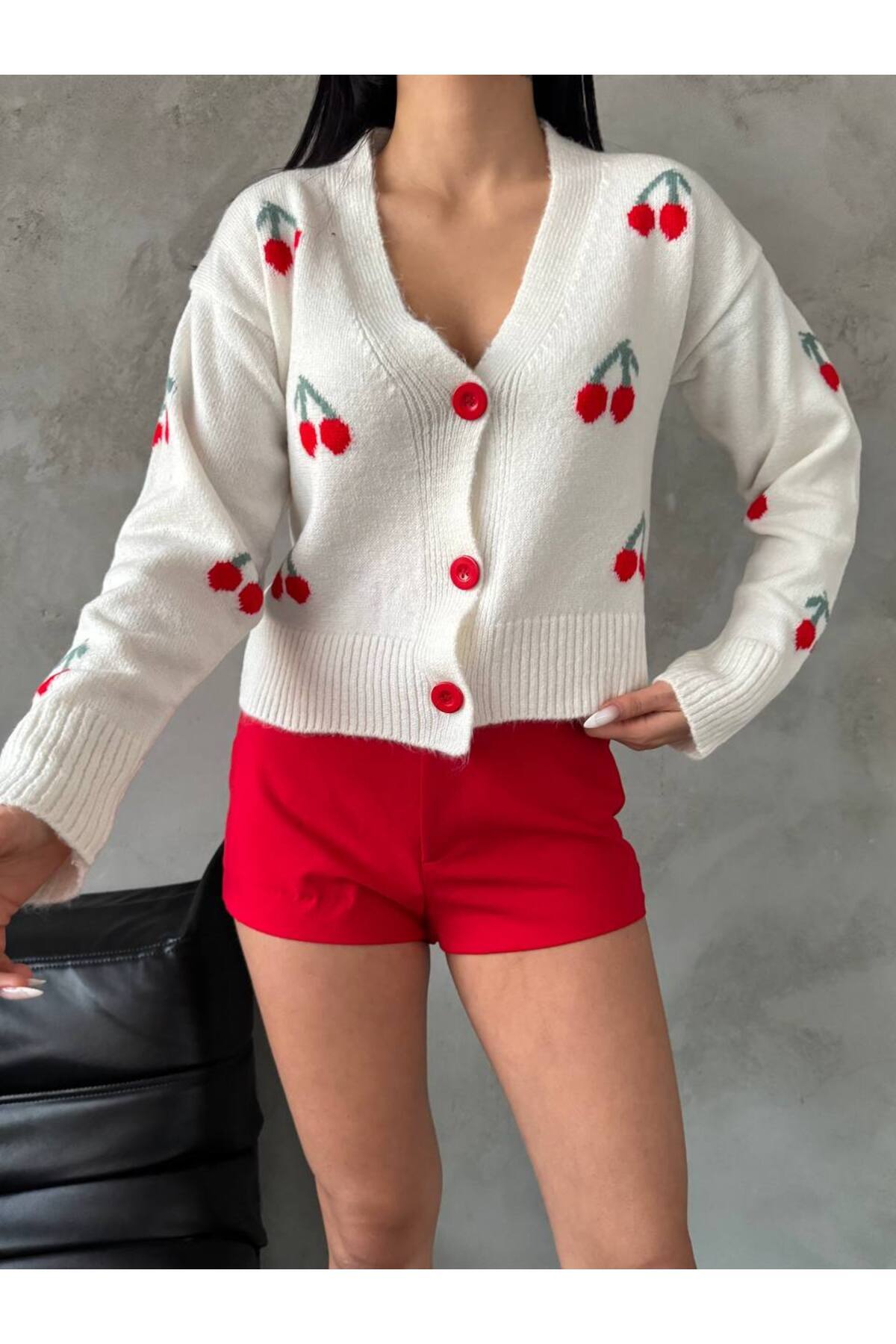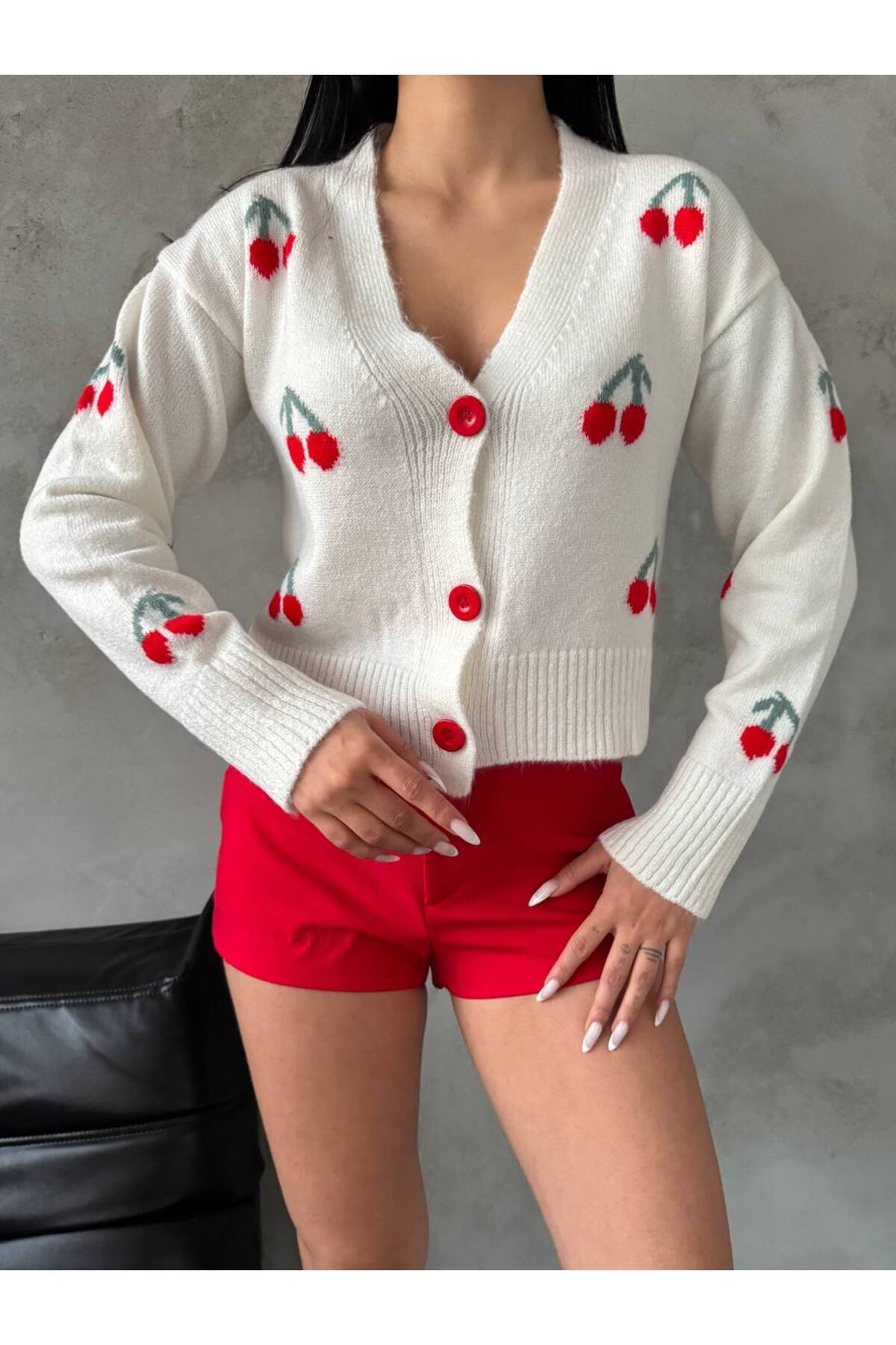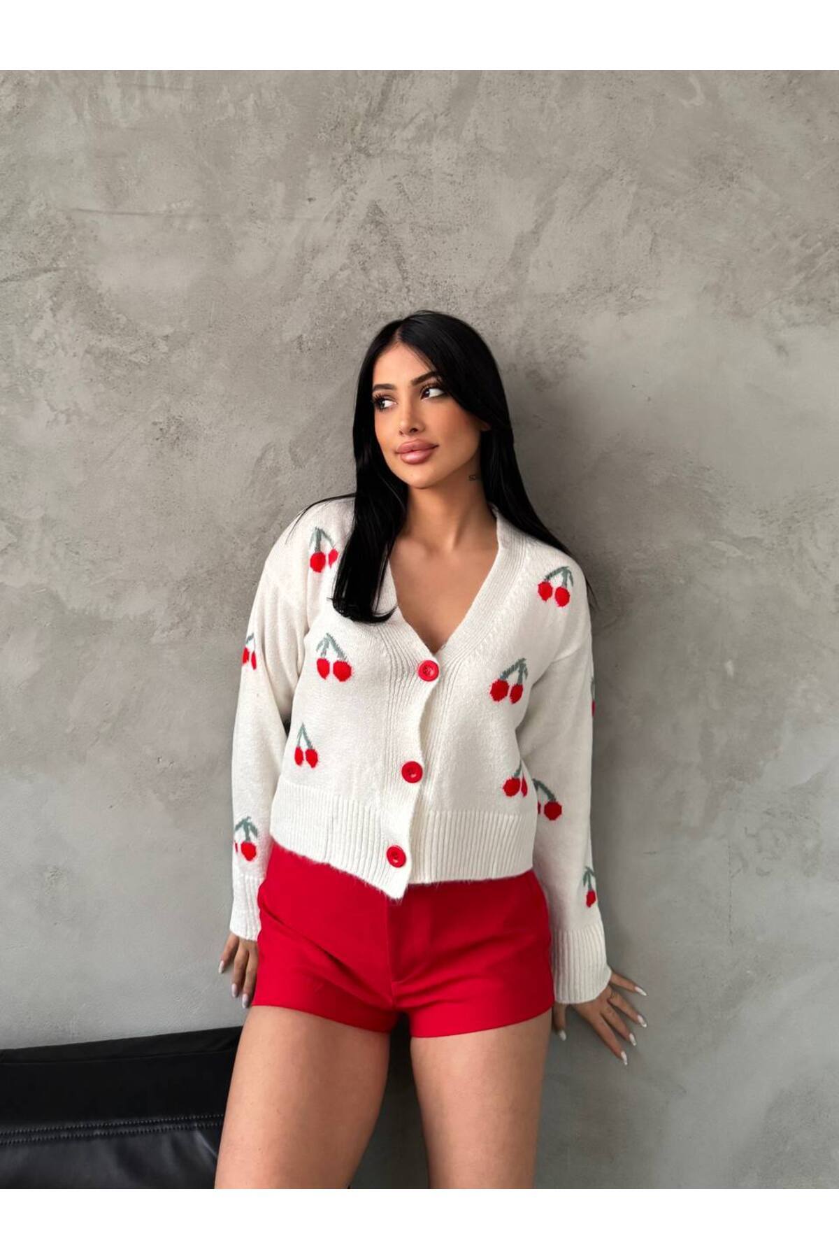 Sportiness KİRAZ ÖRME DETAYLI DÜĞMELİ TRİKO CROP HIRKA