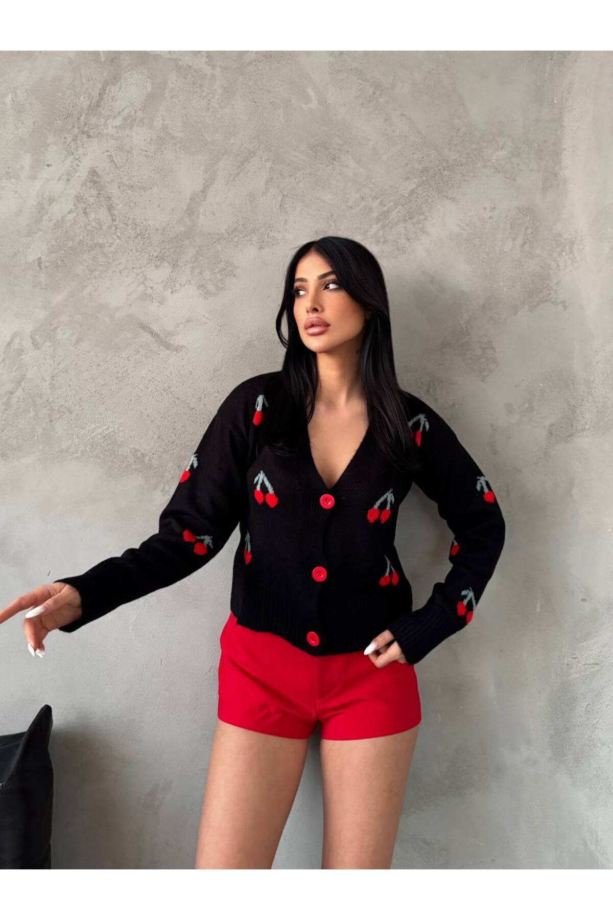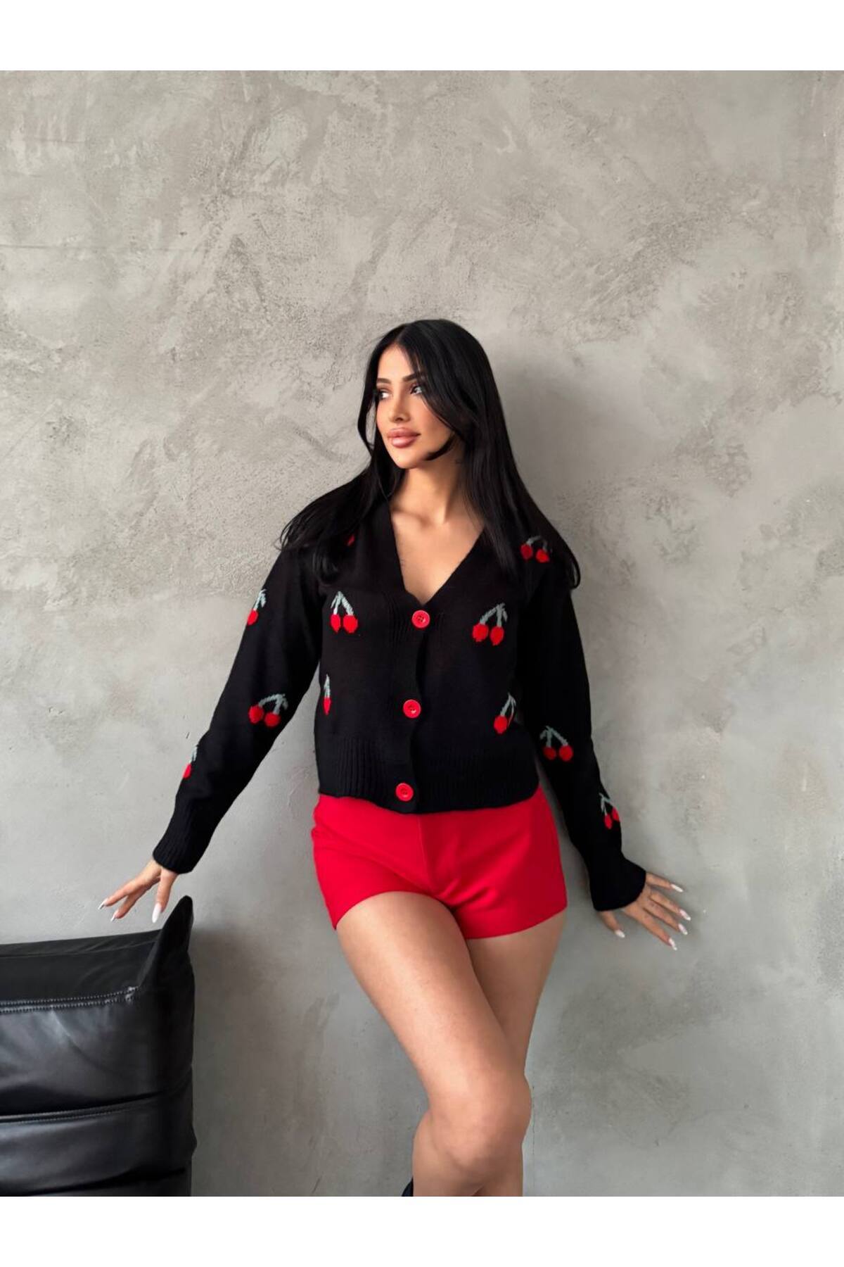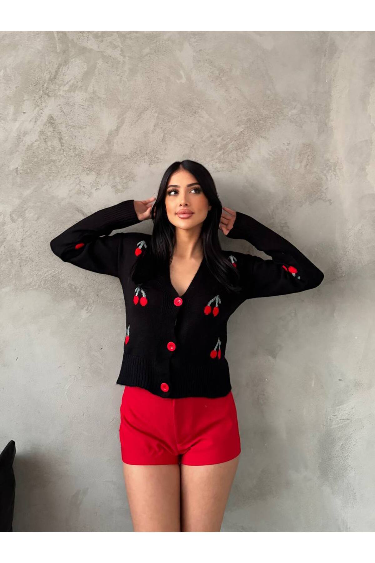Sportiness KİRAZ ÖRME DETAYLI DÜĞMELİ TRİKO CROP HIRKA