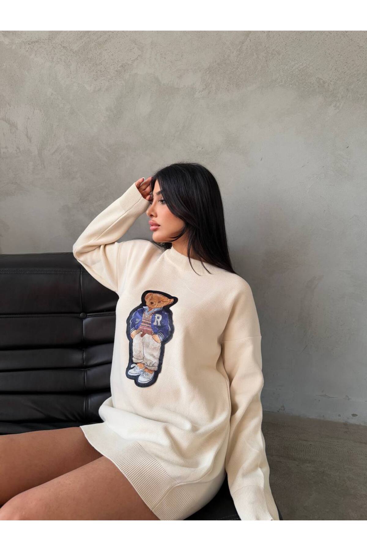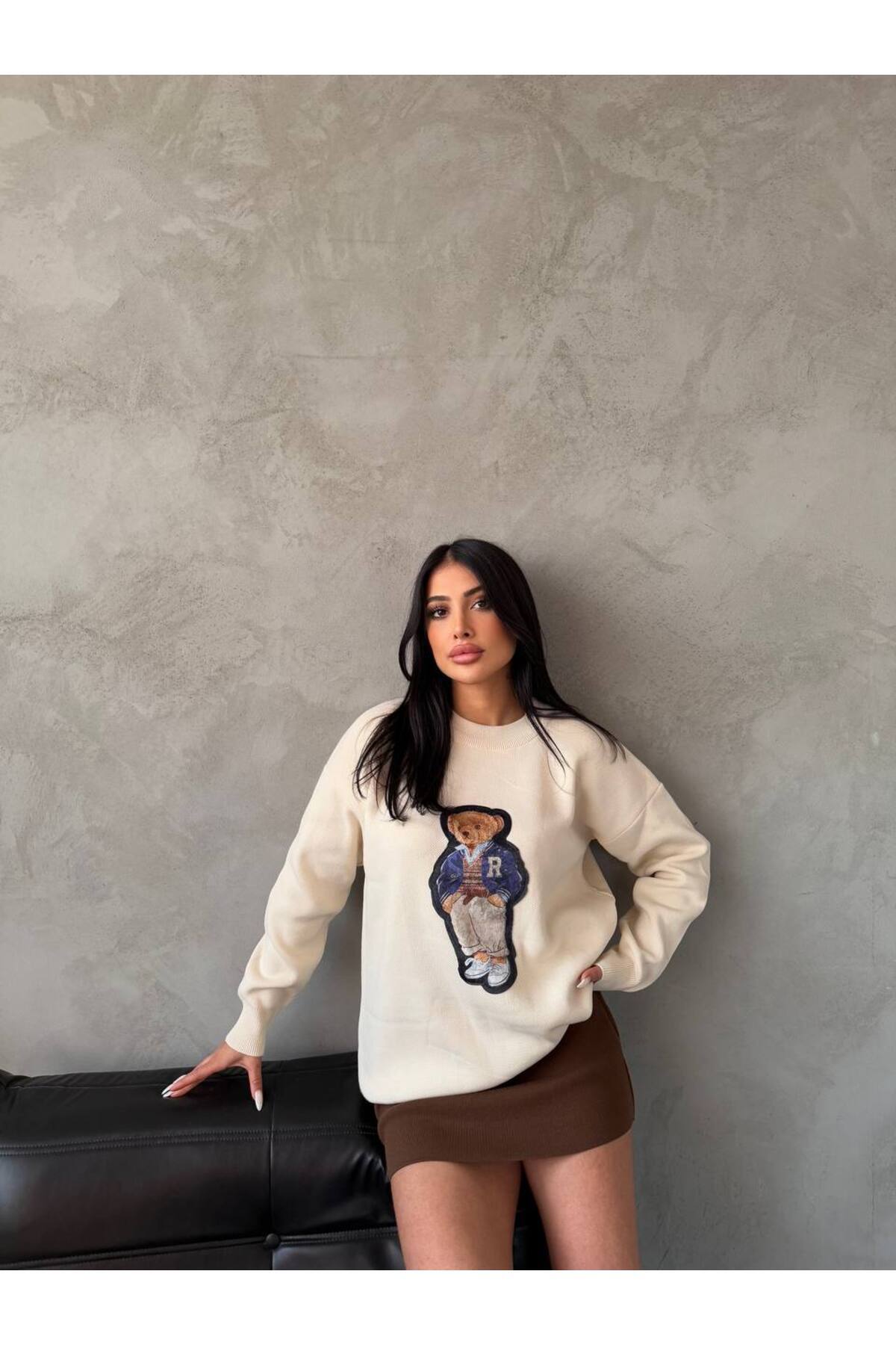 Sportiness NAKIŞLI OVERSİZE AYICIKIKLI TRİKO KAZAK