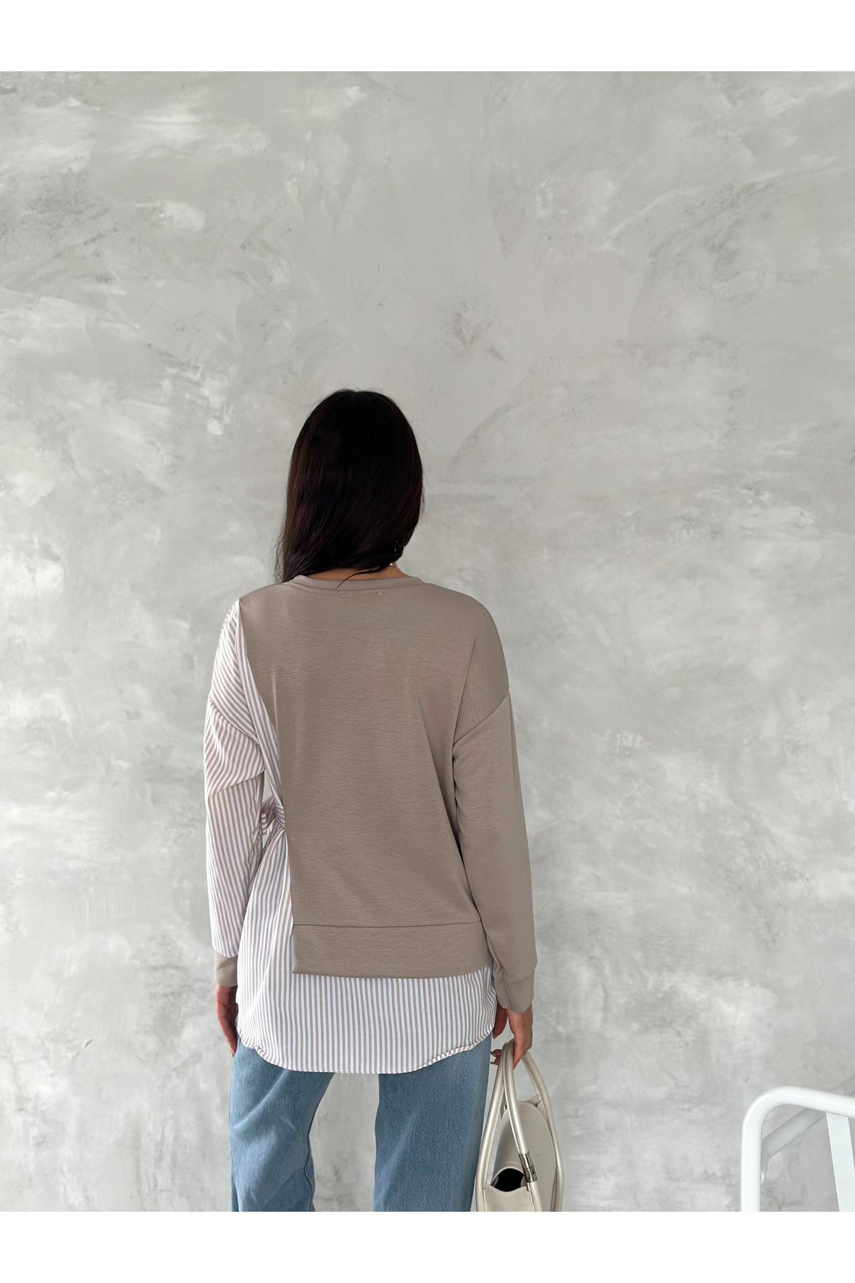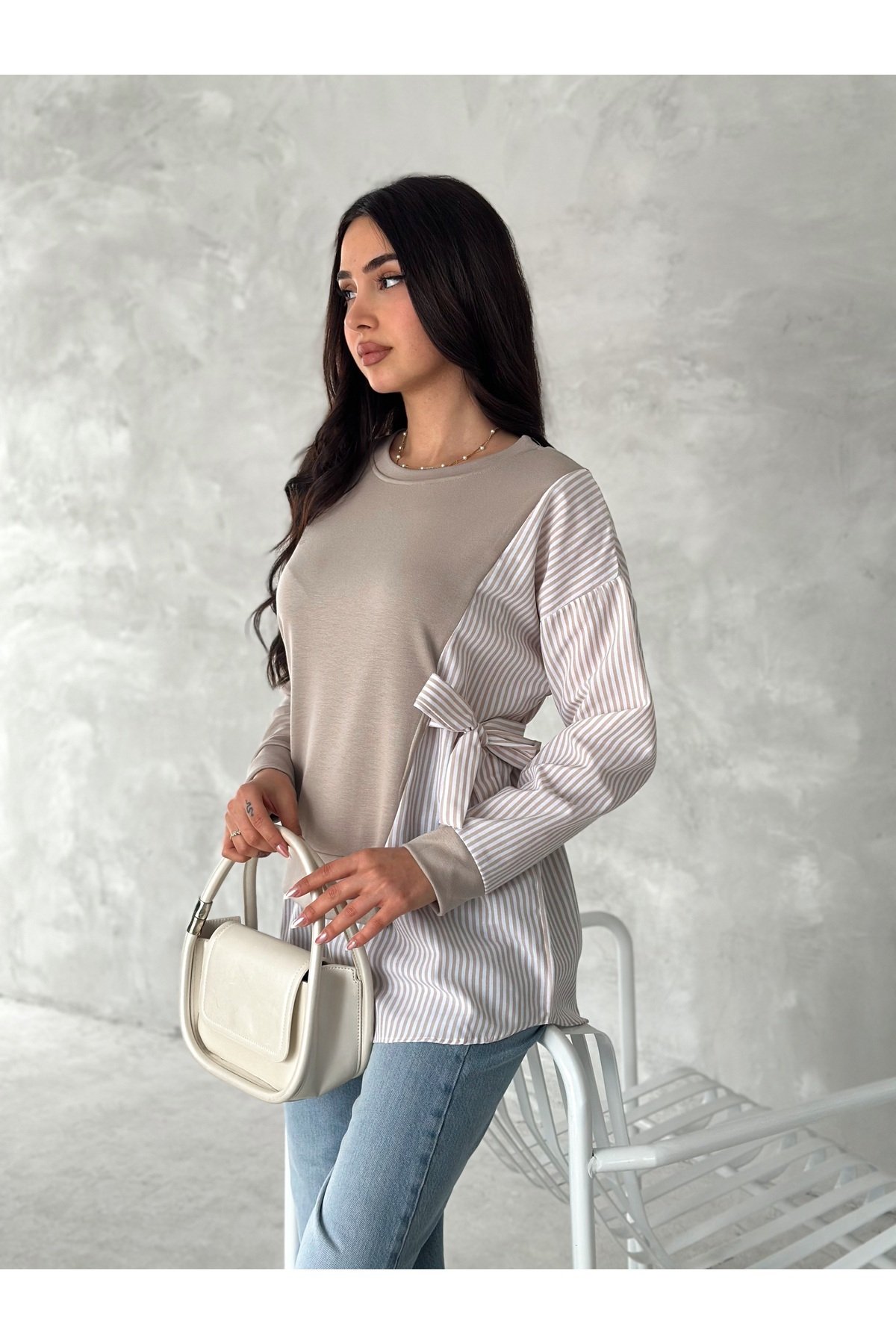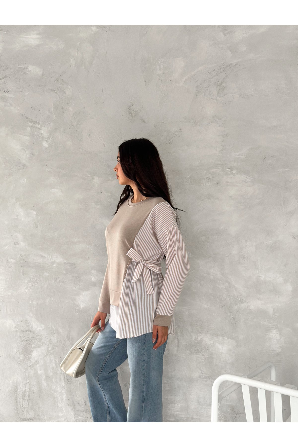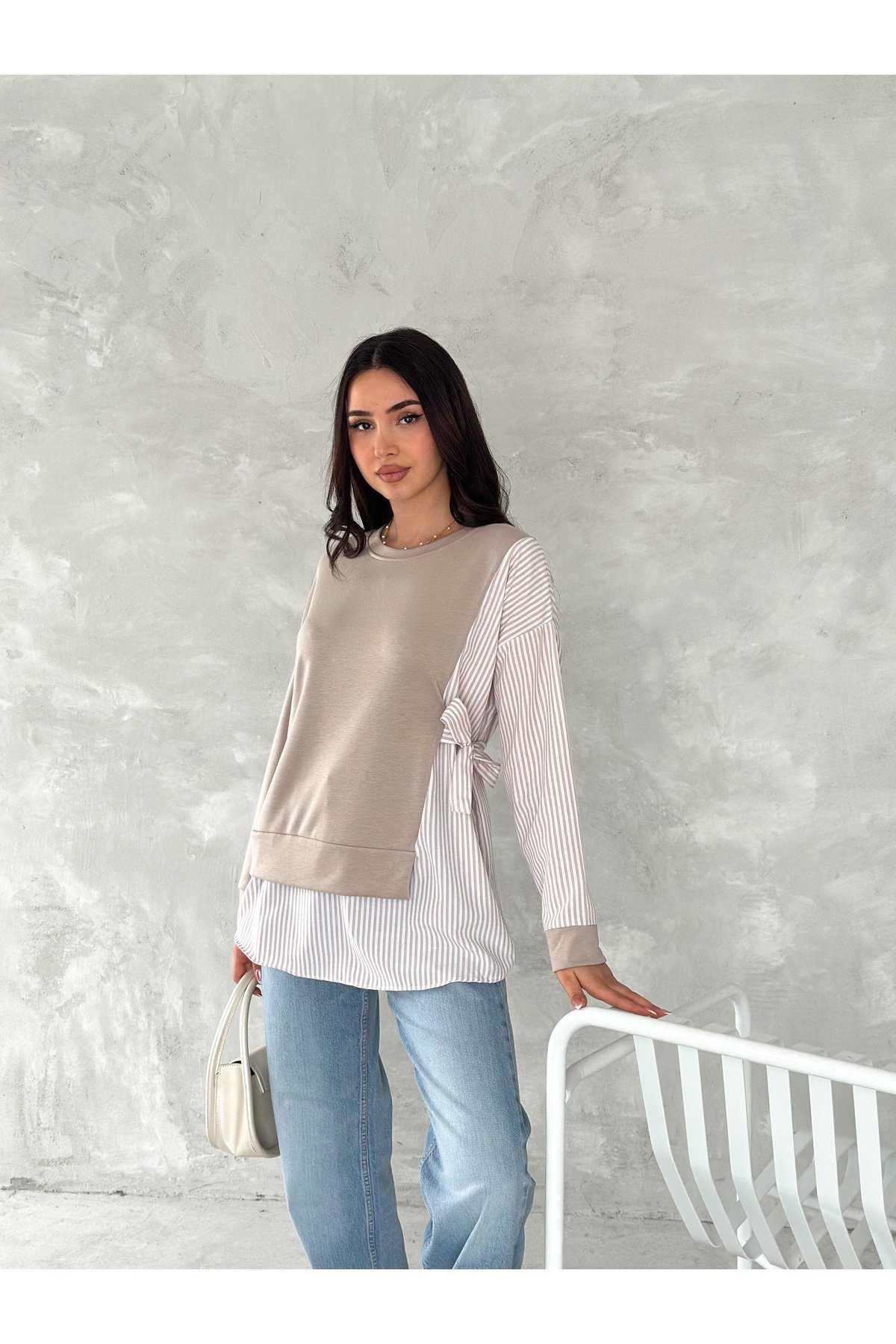 Sportiness POPLİN YANDAN BAĞLAMA DETAYLI GARNİLİ GÖMLEK GÖRÜNÜMLÜ MODAL-TERİKOTON KUMAŞ SWEATSHİRT