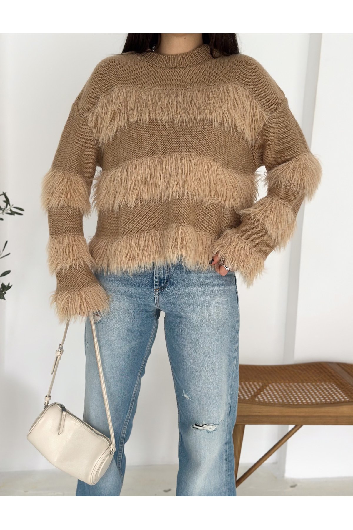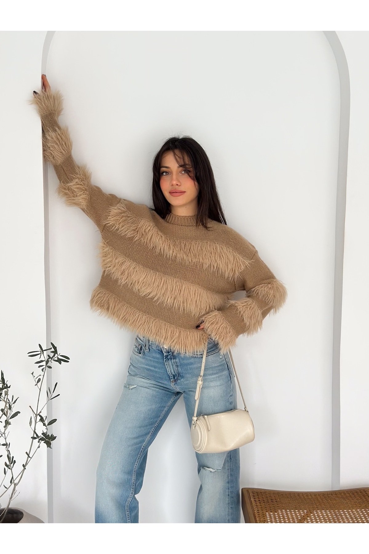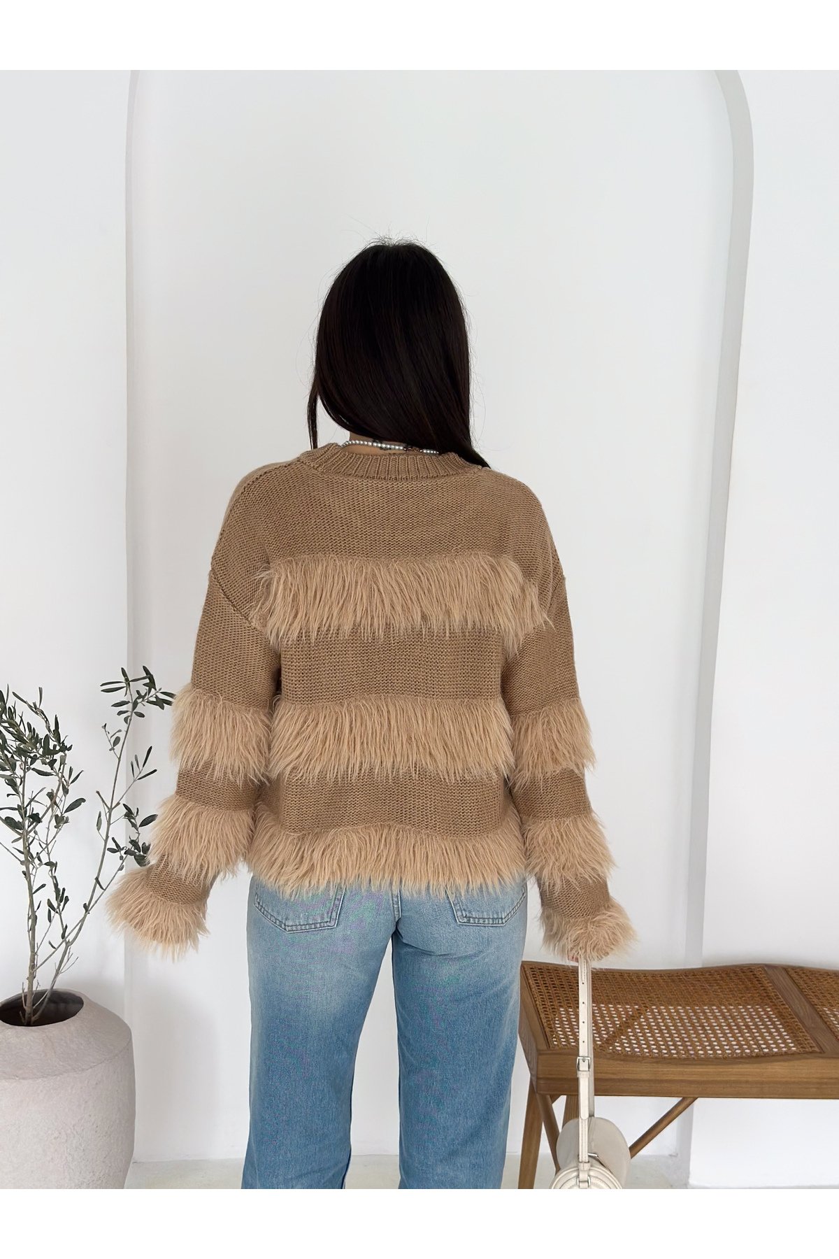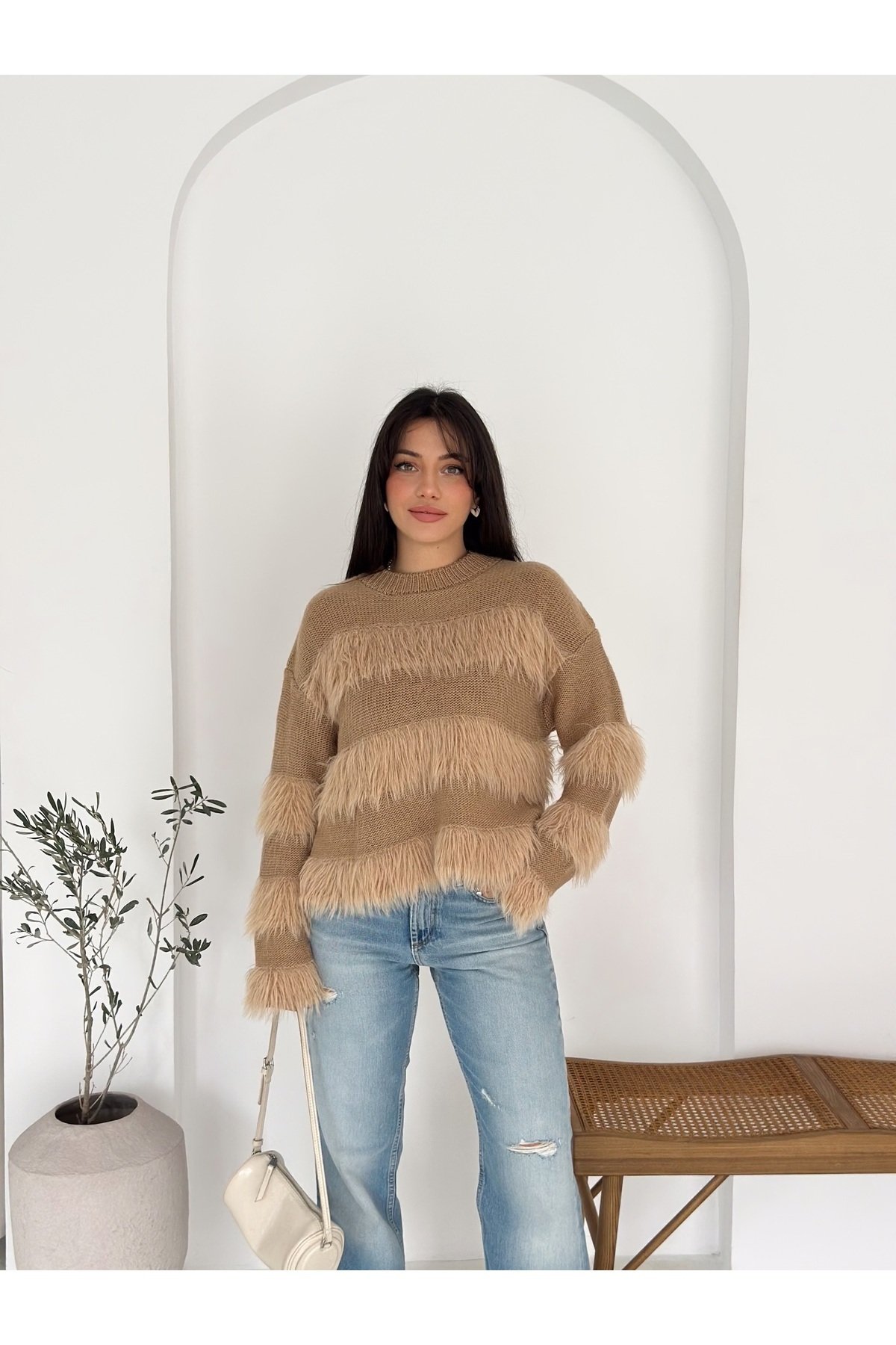 - Bisiklet yaka tasarımı ile modern ve şık bir görünüm sunar.; - Cepsiz yapısı sayesinde minimalist ve düzgün bir siluet sağlar.; - Triko materyali, yumuşak dokusuyla gün boyu konforlu bir kullanım imkanı tanır.; - Casual/günlük ortamlarda rahatlıkla tercih edilebilecek düz deseniyle sadelikten yana olanlar için idealdir.; - Tüylenme yapmayan özelliği ile uzun süreli kullanımda bile formunu korur.; - Orta kalınlıkta triko kumaşı, mevsim geçişlerinde ideal bir tercih olur.; - Regular kalıp ve uzun kol tasarımı, rahat hareket etme özgürlüğü sunar.; - Mono kapama şekliyle kolayca giyilip çıkartılabilir; pratiklik ve şıklığı bir arada sunar.; - Suni tüy detayları ile sofistike bir dokunuş eklerken, baskısız yüzeyiyle sade güzelliği ön plana çıkarır.; - Örgü dokuma tipi, dayanıklılığı arttırarak ürünün ömrünü uzatır.; -