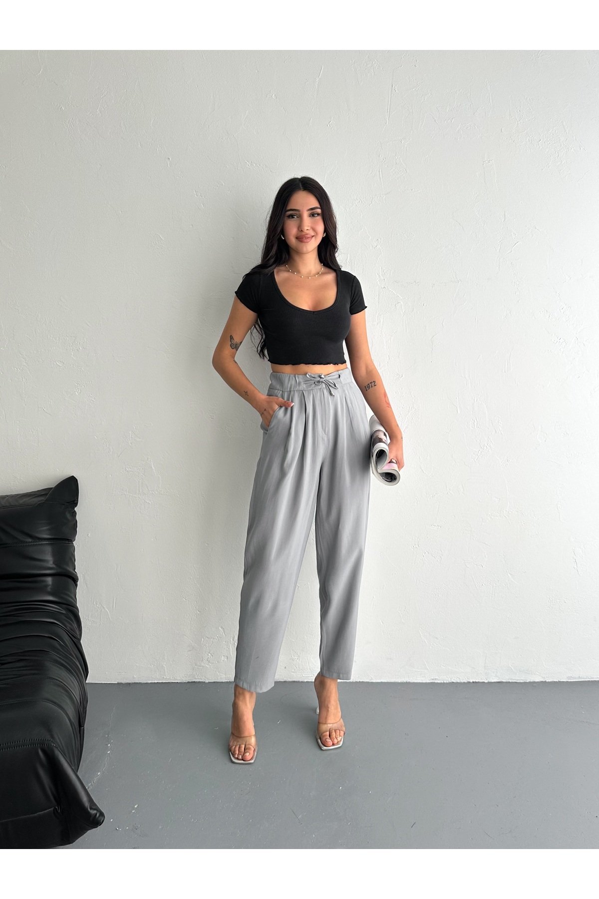 Sportiness YUMUŞAK DOKU BELİ BAĞCIKLI DÜĞMELİ MODAL KUMAŞ PANTOLON