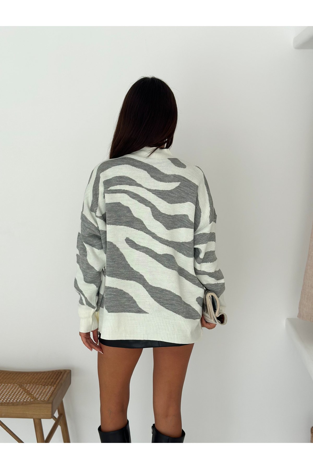 - Yumuşak dokusuyla konforlu bir kullanım sunan triko kazak, günlük şıklığınızı tamamlar.; - Zebra desenli tasarımı ile modern ve dinamik bir görünüm sağlar.; - Baskısız yapısı sayesinde sade ve zarif bir stil oluşturur.; - Örgü dokuması, dayanıklılığı artırırken estetik bir duruş sergiler.; - Cepsiz yapısı ile minimalist bir tarza sahip olmanızı sağlar.; - Tek parça halinde gelmesi pratik kullanım imkanı tanır.; - Mono kapama detayı kolay giyip çıkarmayı mümkün kılar.; - Her mevsim rahatlıkla tercih edebileceğiniz çok yönlülükte tasarlanmıştır.; - Sürdürülebilirlik detayına önem vermeyen basit ama etkili bir seçimdir.; - Cool & comfort persona'sına uygun olarak tasarlanmış olup, rahatlığı ön planda tutar.; - Örme detayları ile zenginleştirilmiş silueti sayesinde vücut hatlarını nazikçe sararak şık durur.; - Orta kalınlığındaki kumaşı mevsim geçişlerinde ideal sıcaklık dengesi sunar.; - Extra yumuşaklık hissiyatıyla gün boyu konforlu anlar yaşatır.; - Kemersiz tasarımıyla minimalizmi benimseyenlere hitap ederken, bel bölgesini vurgulamadan rahatlık sunar.; - Kutu bulunmaması nedeniyle ekstra depolama alanından tasarruf etmenizi sağlar.; - Basic koleksiyonun parçası olarak her gardrobun temel taşlarından biri haline gelir.; - %60 akrilik ve %40 pamuk karışımından oluşan materyali cildinizle dosttur ve uzun süreli kullanım vaad eder.; - Regular fit kesimiyle vücudu saran ancak sıkmayan ideal oturuşa sahiptir.; - TR menşeli olması yerel üretim avantajını beraberinde getirerek sürdürülebilirlik adına destek olur.; - Triko kumaş tipi esnekliği arttırarak hareket özgürlüğünüzü maksimize eder.; - Kadın / kız kullanıcılar için idealdir; her yaştan kadının gardrobunda yer bulabilir.